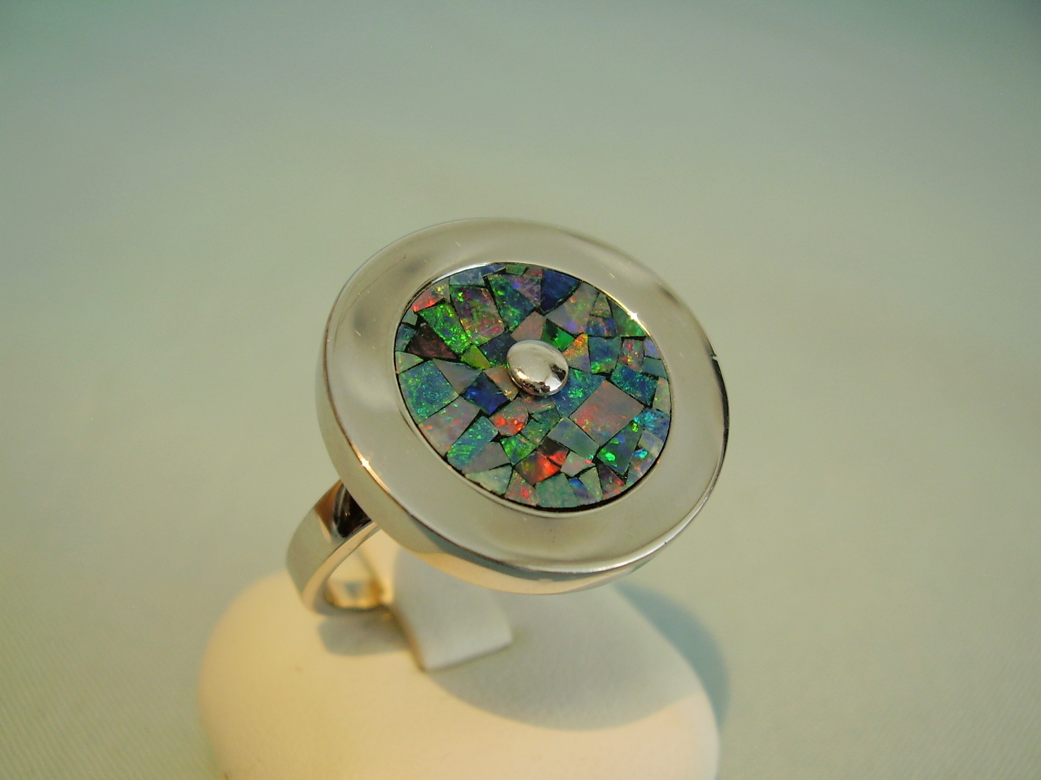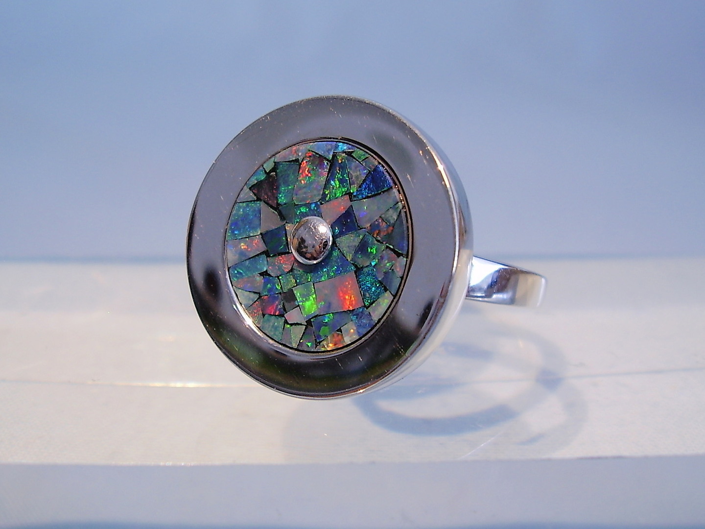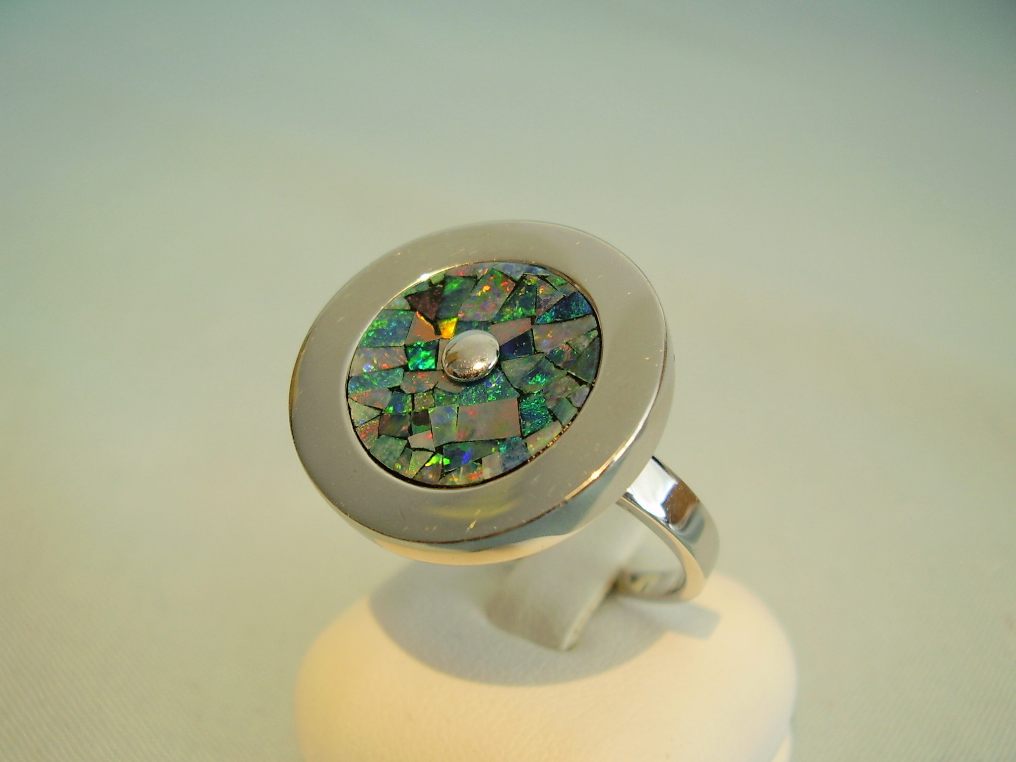 472972. OPAL RING, sølv 925, mosaik opal, designer smykker.