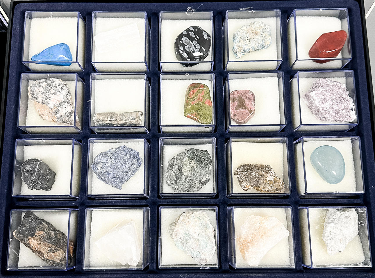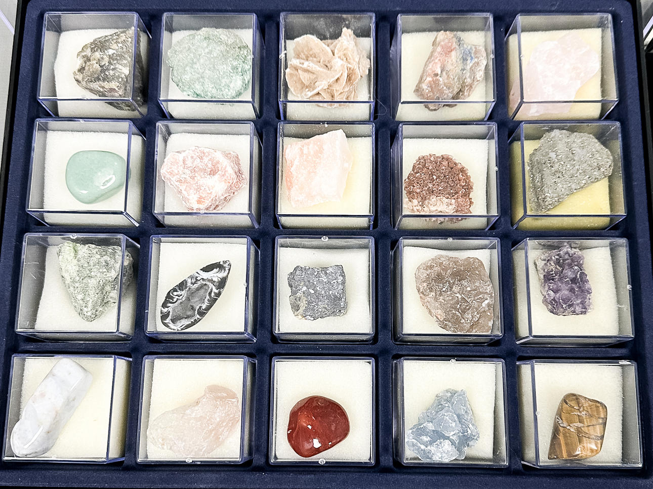 2 kasser med 20 sten/mineraler hver.
