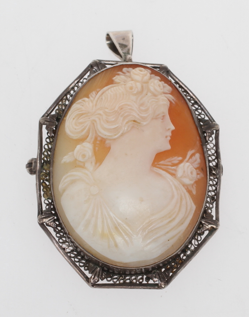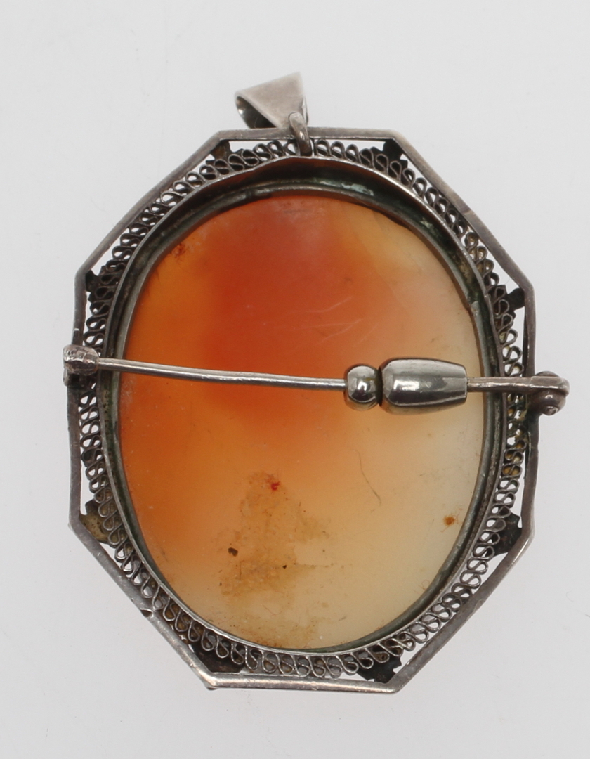 47479. BROCHE / HANDSÆNG sølv med cameo.