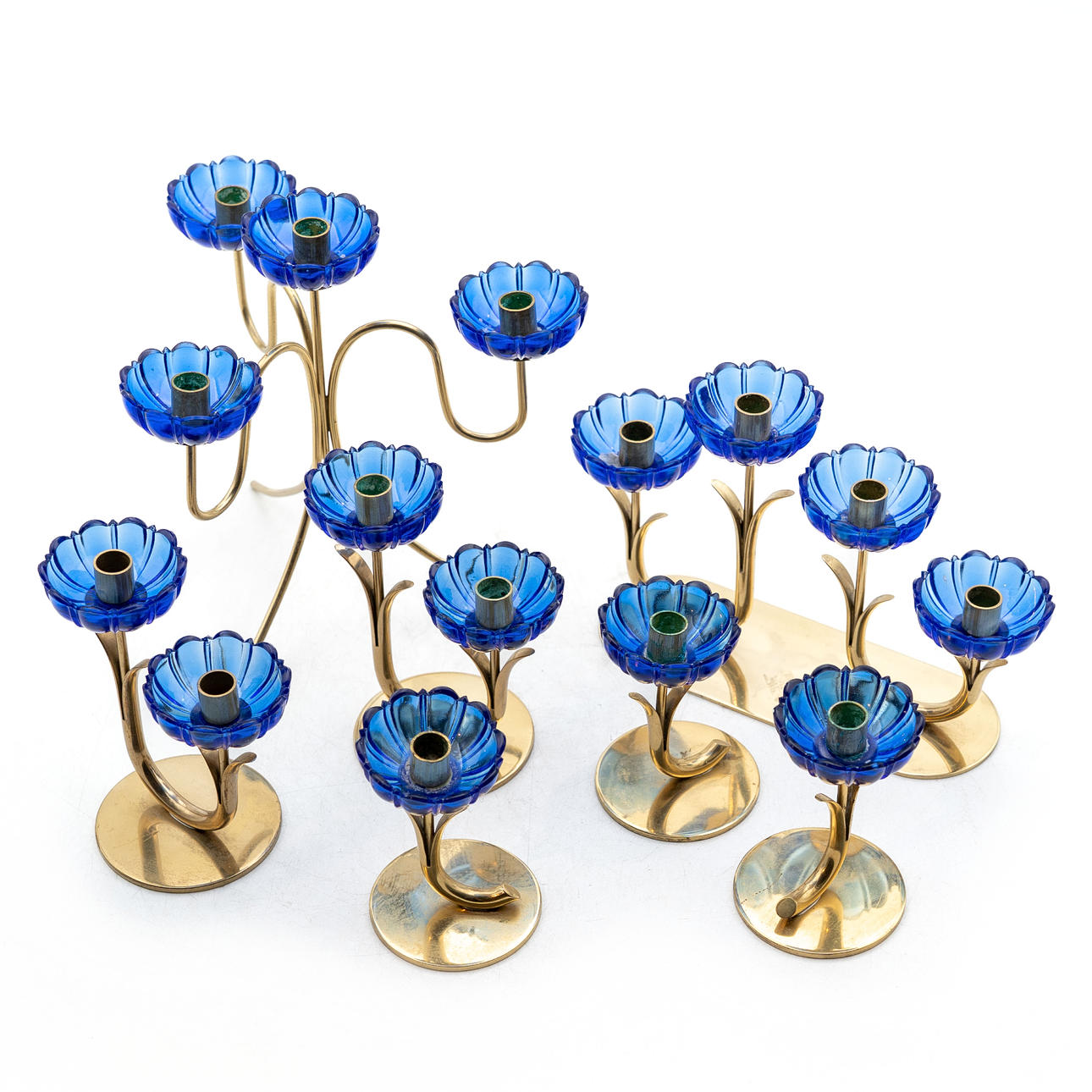 4749219. GUNNAR ANDER. LYSESTAGER, 7 Stk., Messing/Glas, Ystad-Metall.