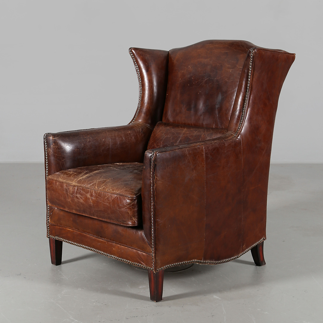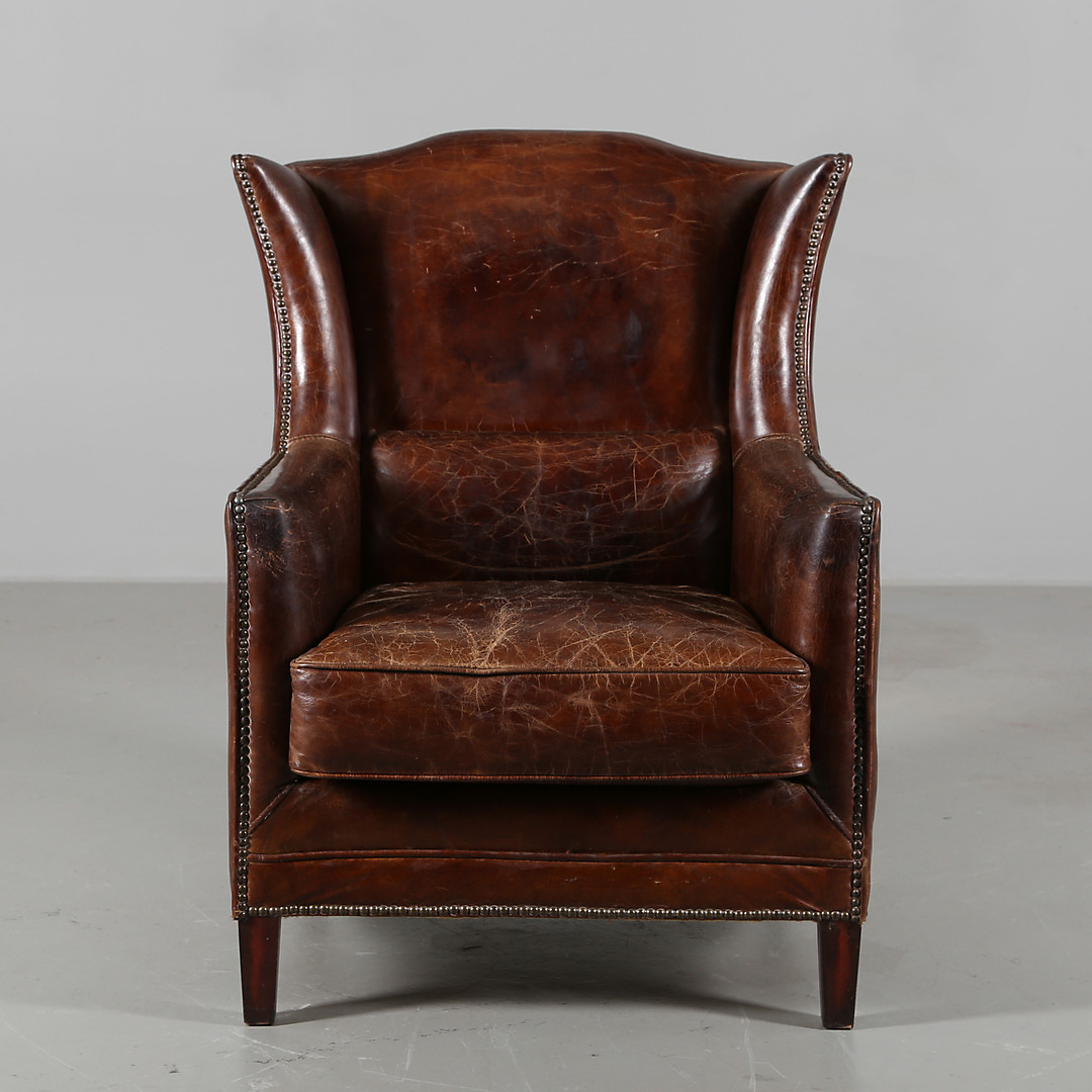 476495. EAR PATCH LÆNESTOL, brunt læder, 1900-tallet.