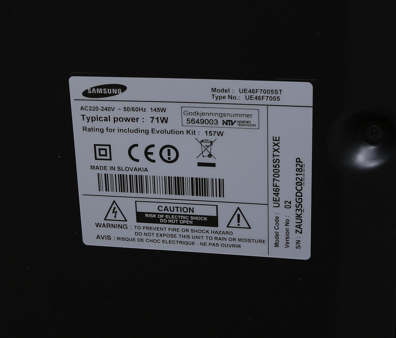 Model UE46F7005ST. Fjern.