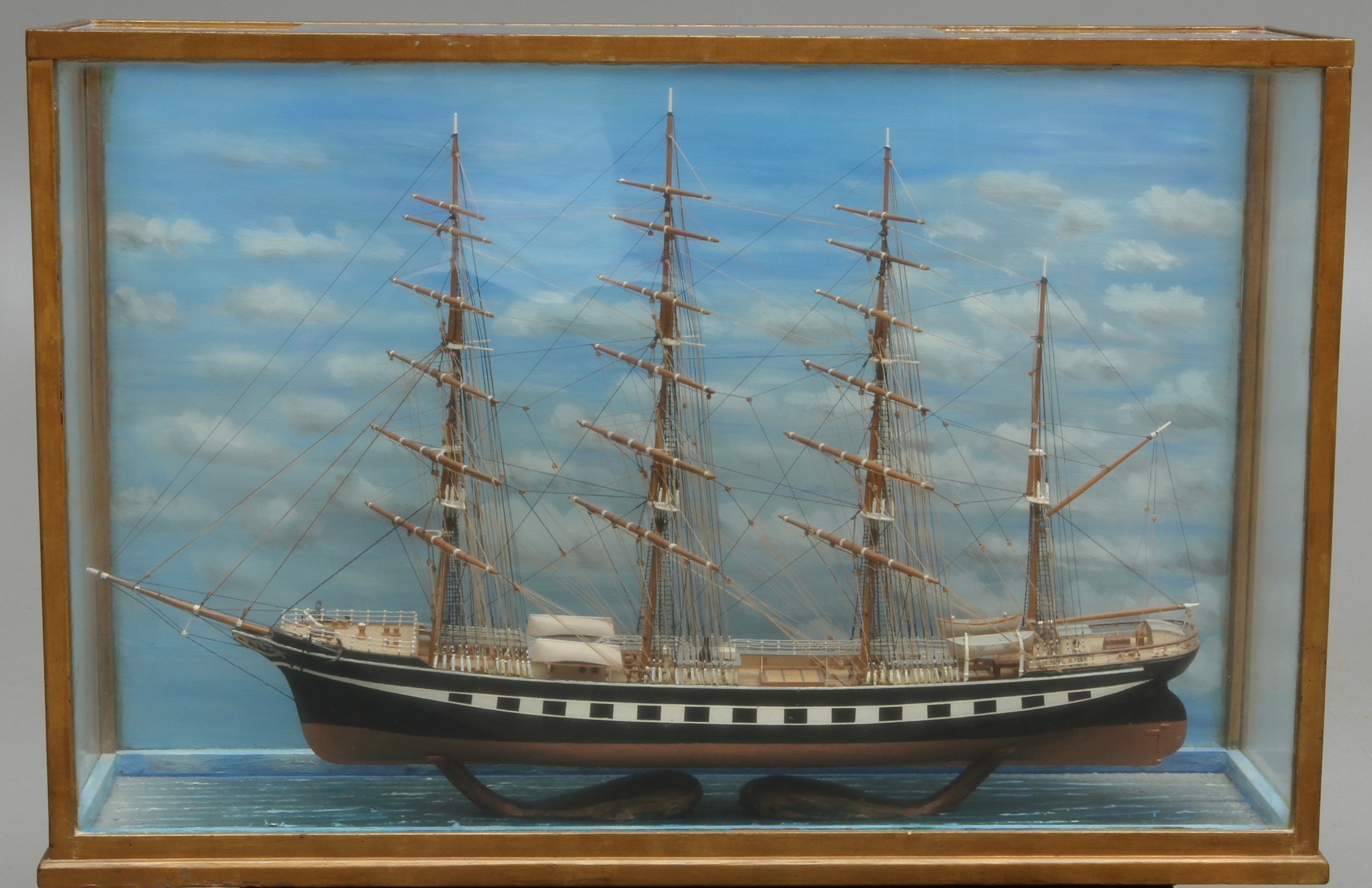 47987. MODELSKIP, fuld model i glaseret diorama.