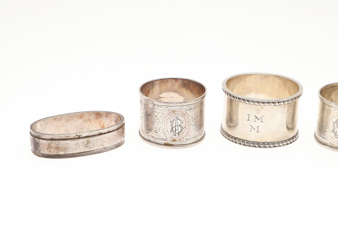 FEM SØLV SERVIETRINGE.