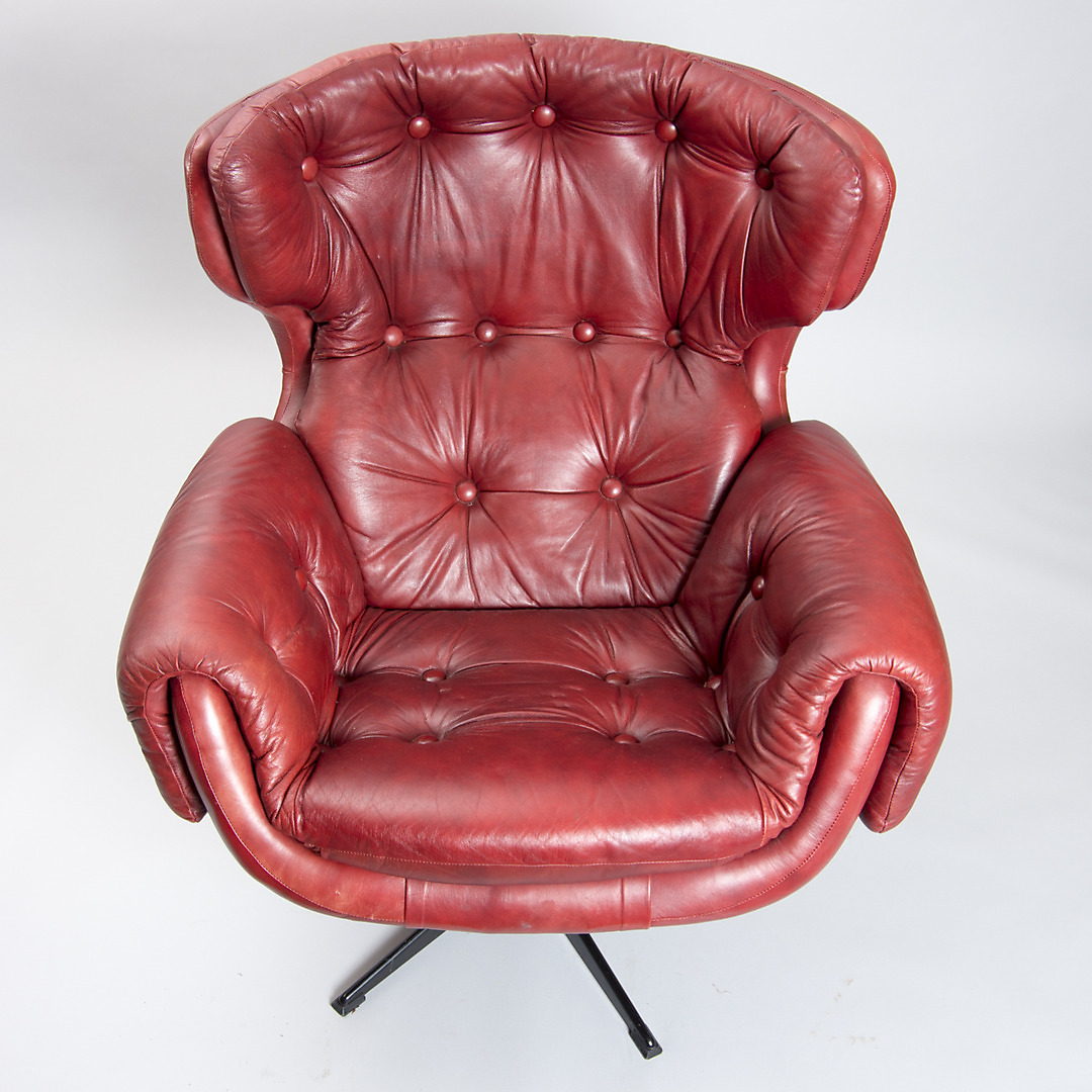 481110. SPINDERENDE LÆNESTOL, rødt læder.