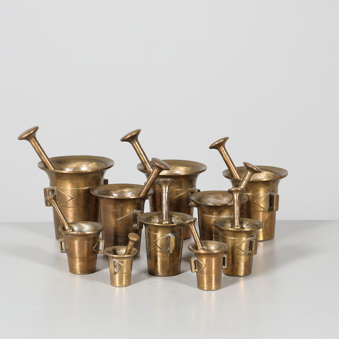 4822300. Et sæt af 10 messingmørtler.