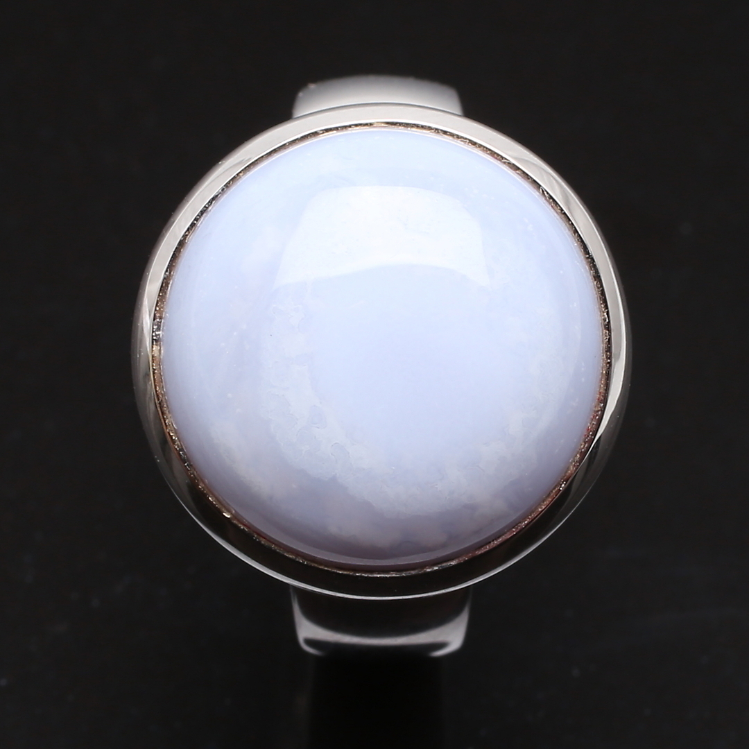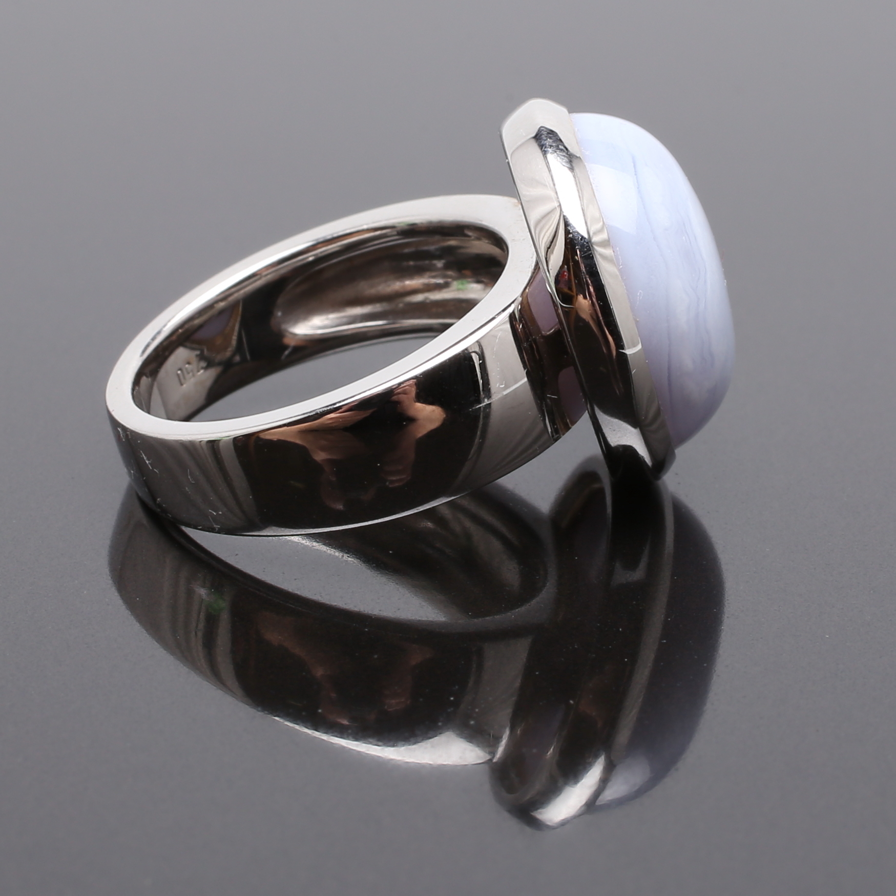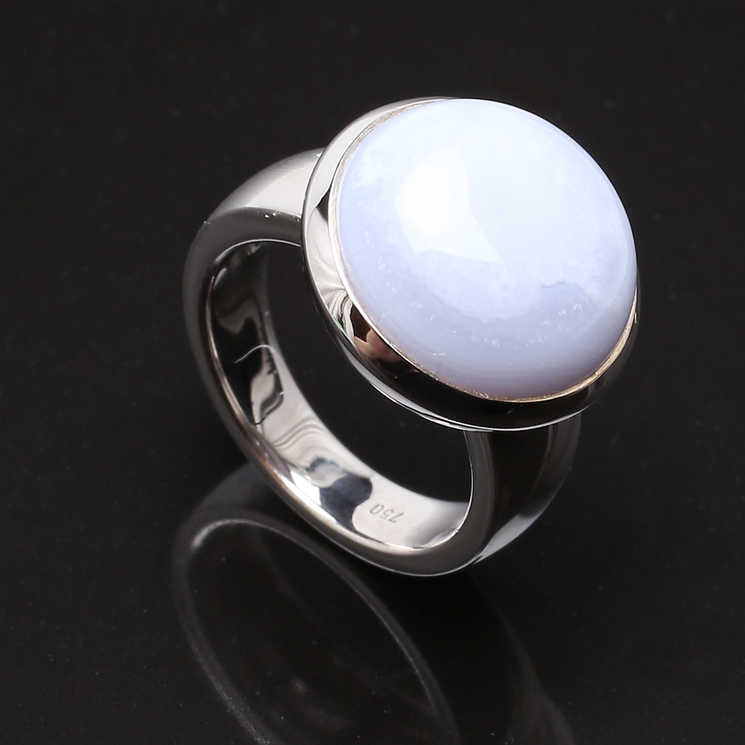 482403. RING 18 K hvidguld med gråblå sten.