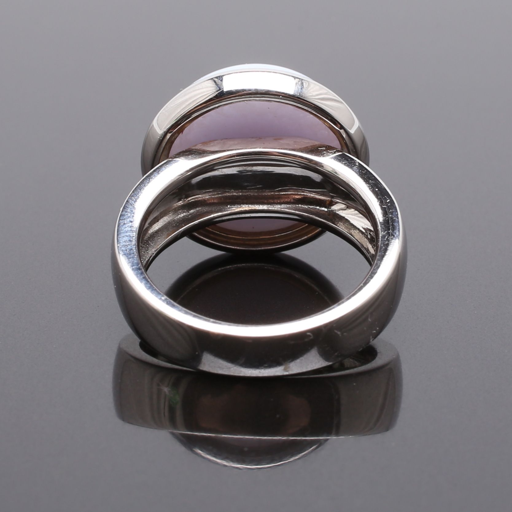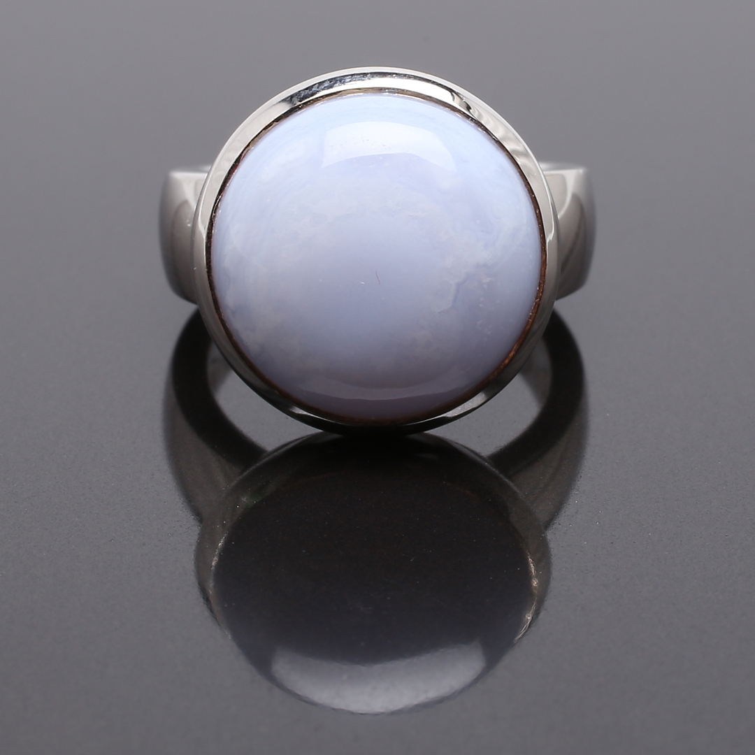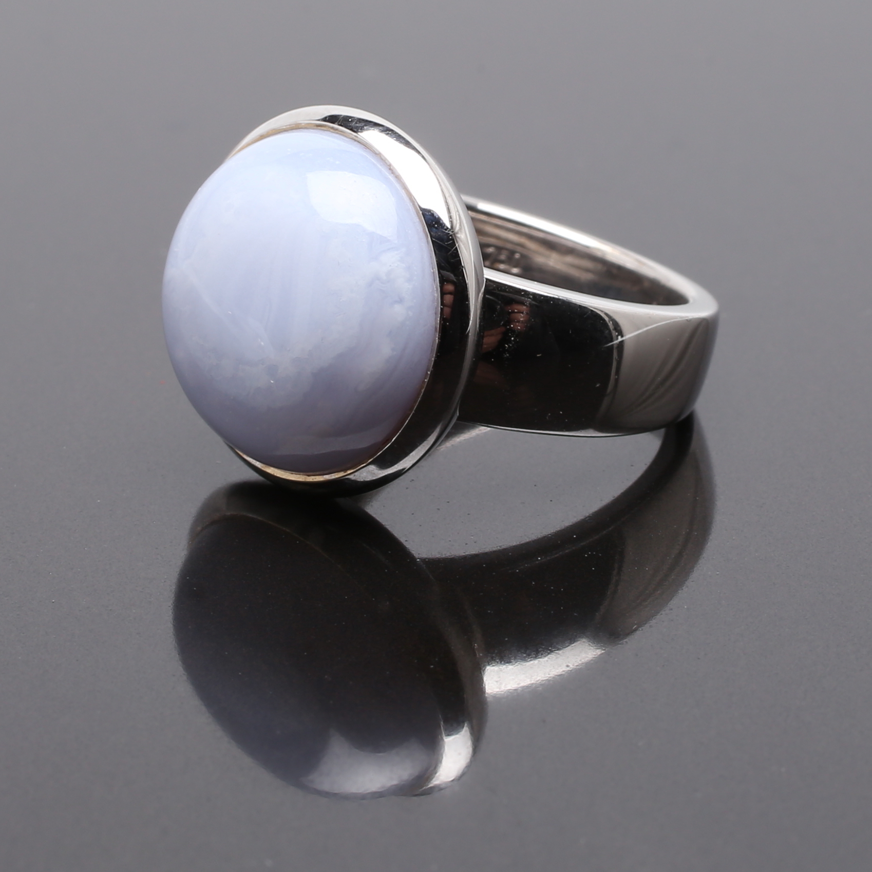 482403. RING 18 K hvidguld med gråblå sten.