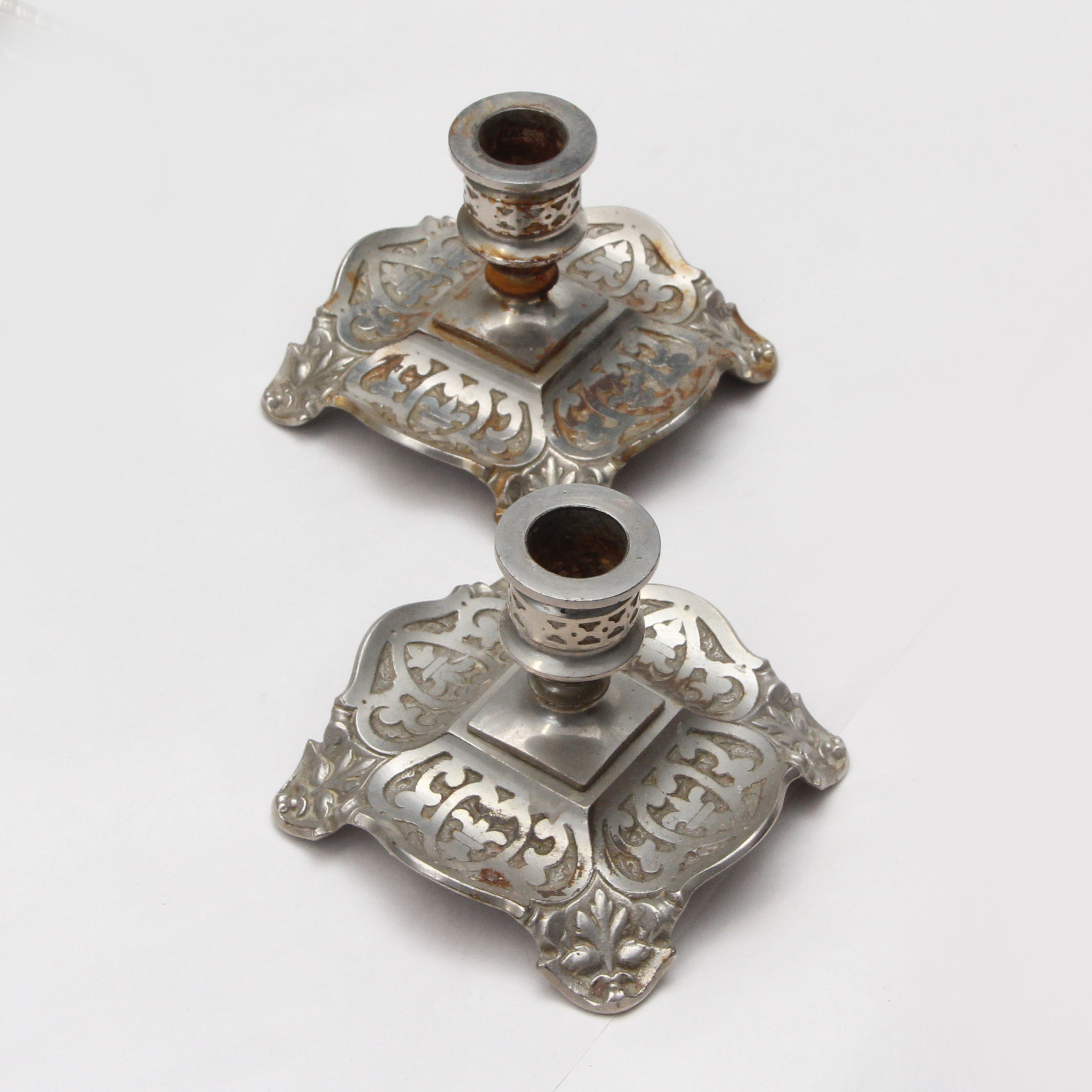 4825382. LYSESTAGER, 1 par, metal, signeret E.