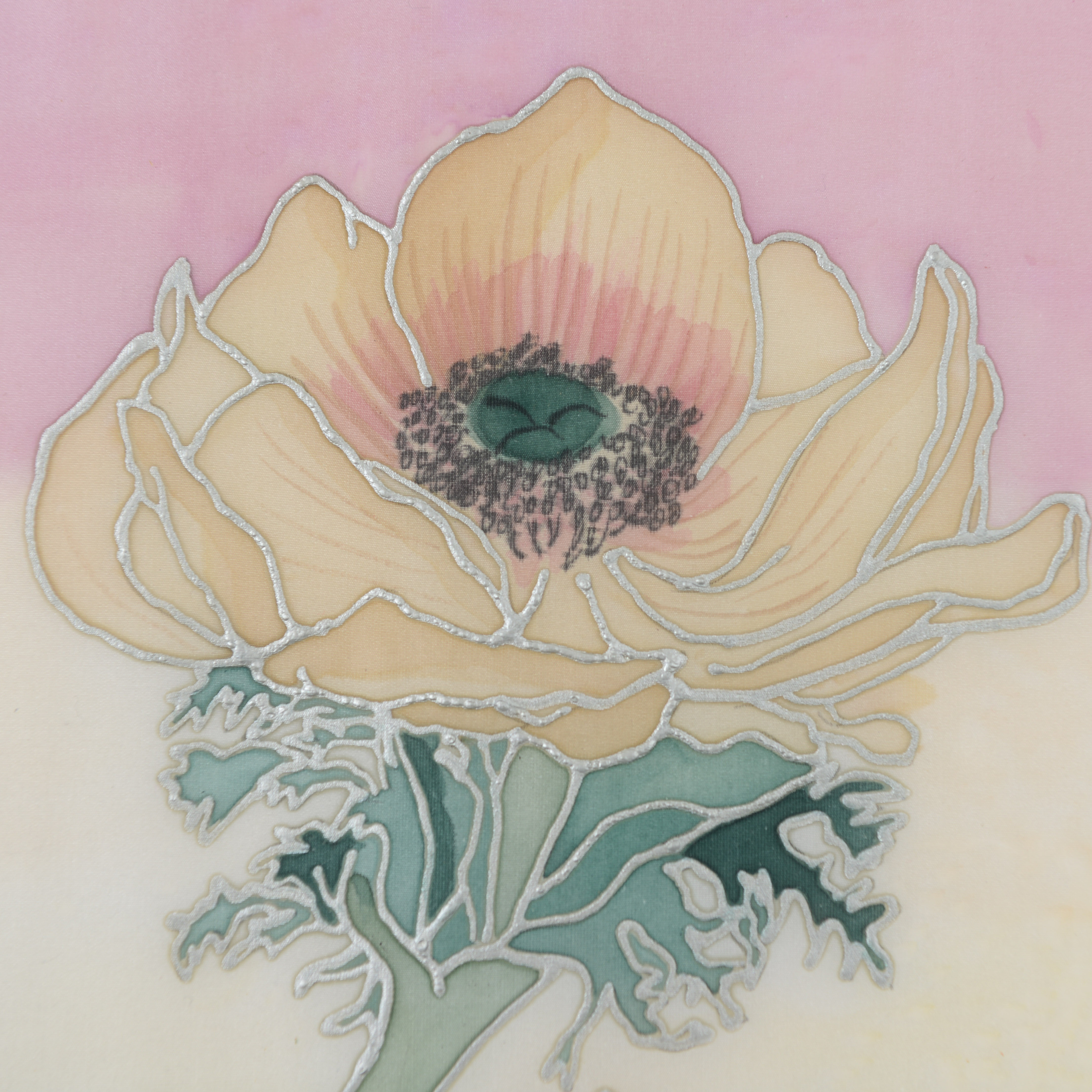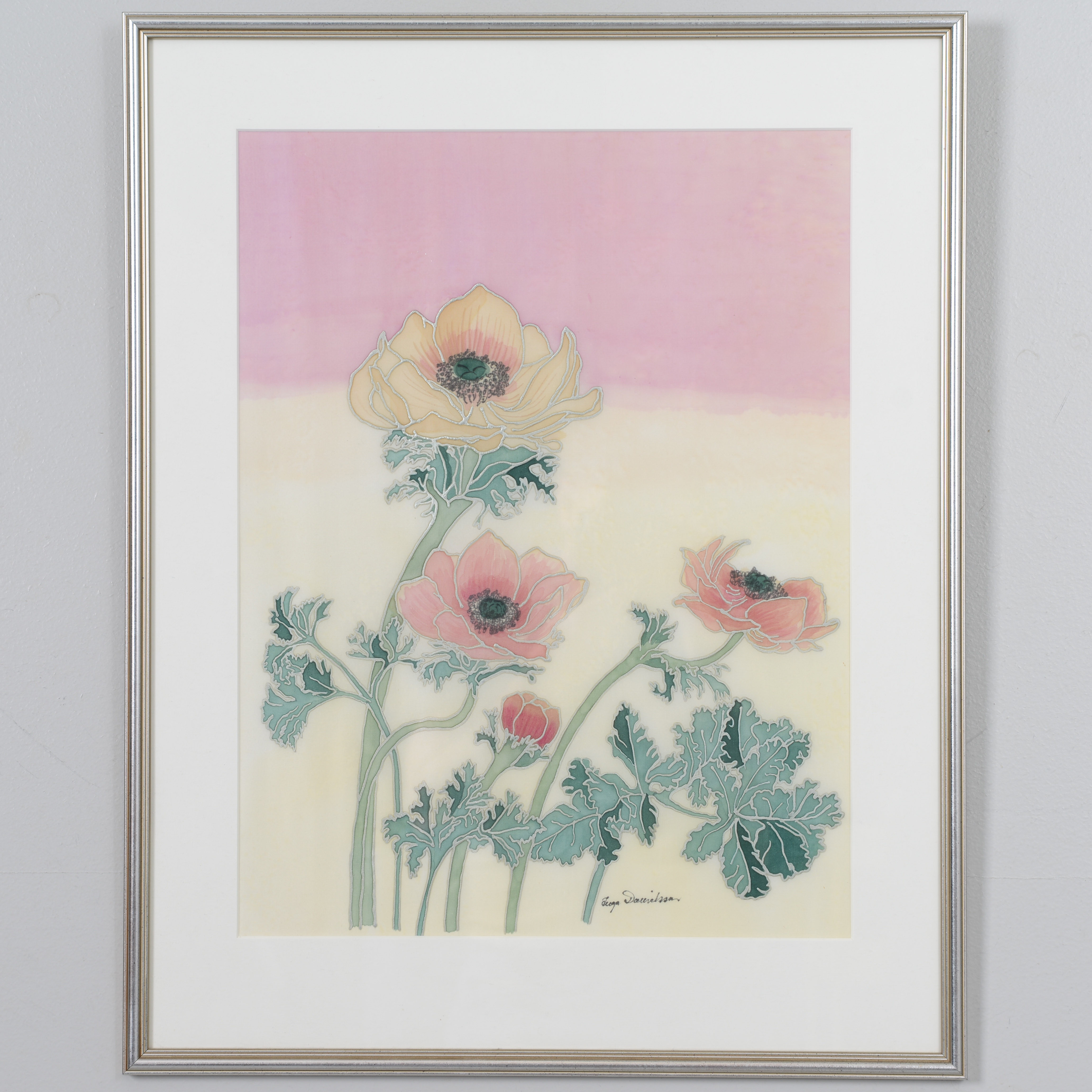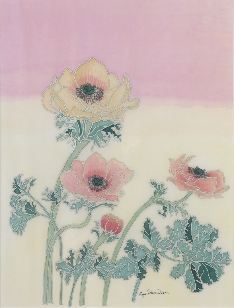 4826100. INGA DANIELSSON. Pæoner, broderi/tekstilkunst, signeret.