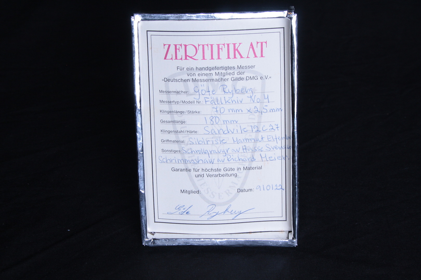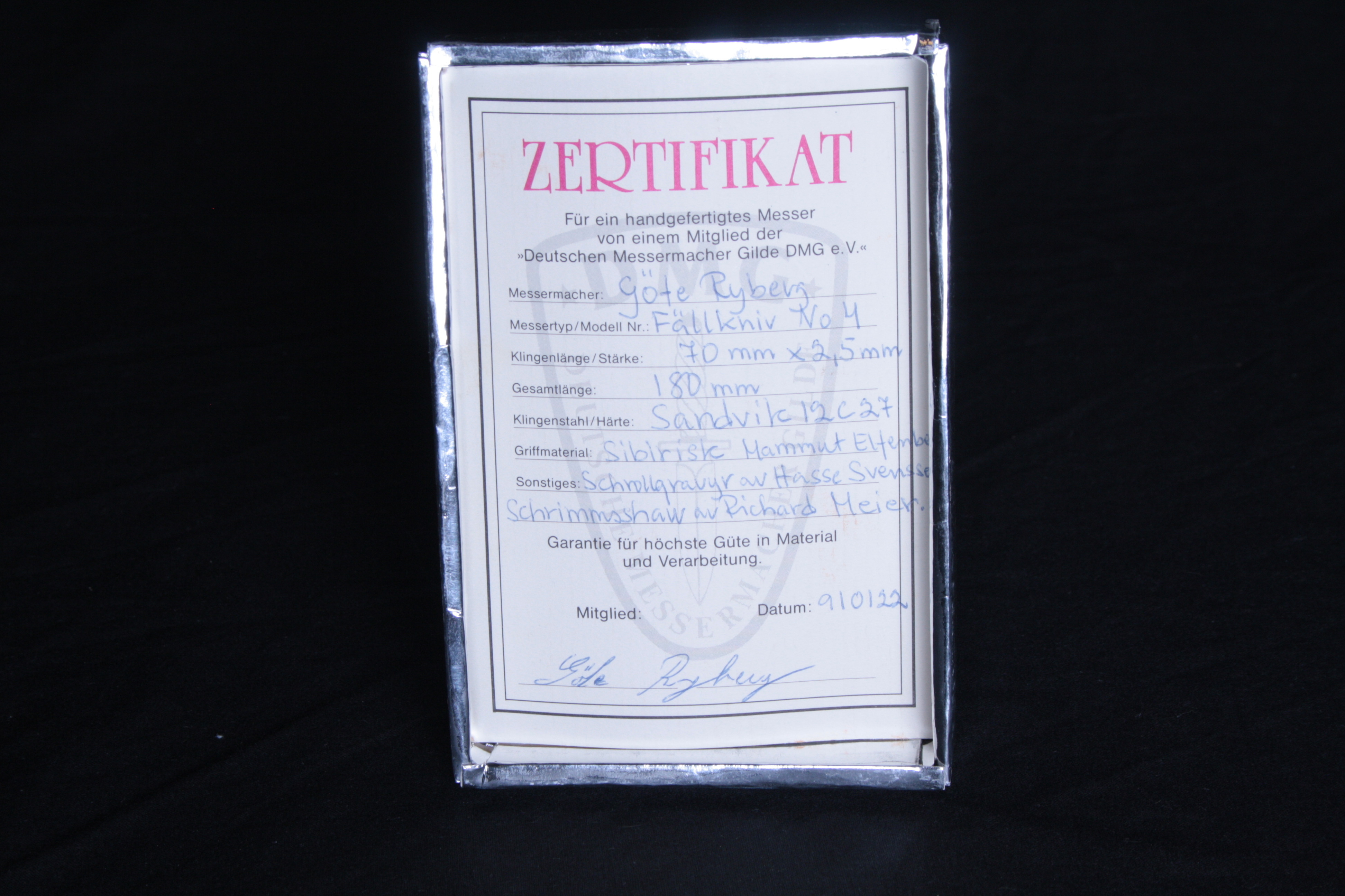 482826. ,GÖTE RYDBERG. FALLENDE KNIV gravering Hans Svensson.