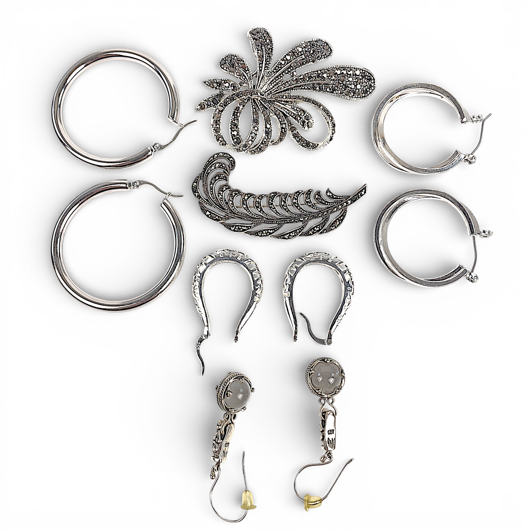 4834340. BROCHER og ØRERINGE, sølv/bijouterie, 6 stk.