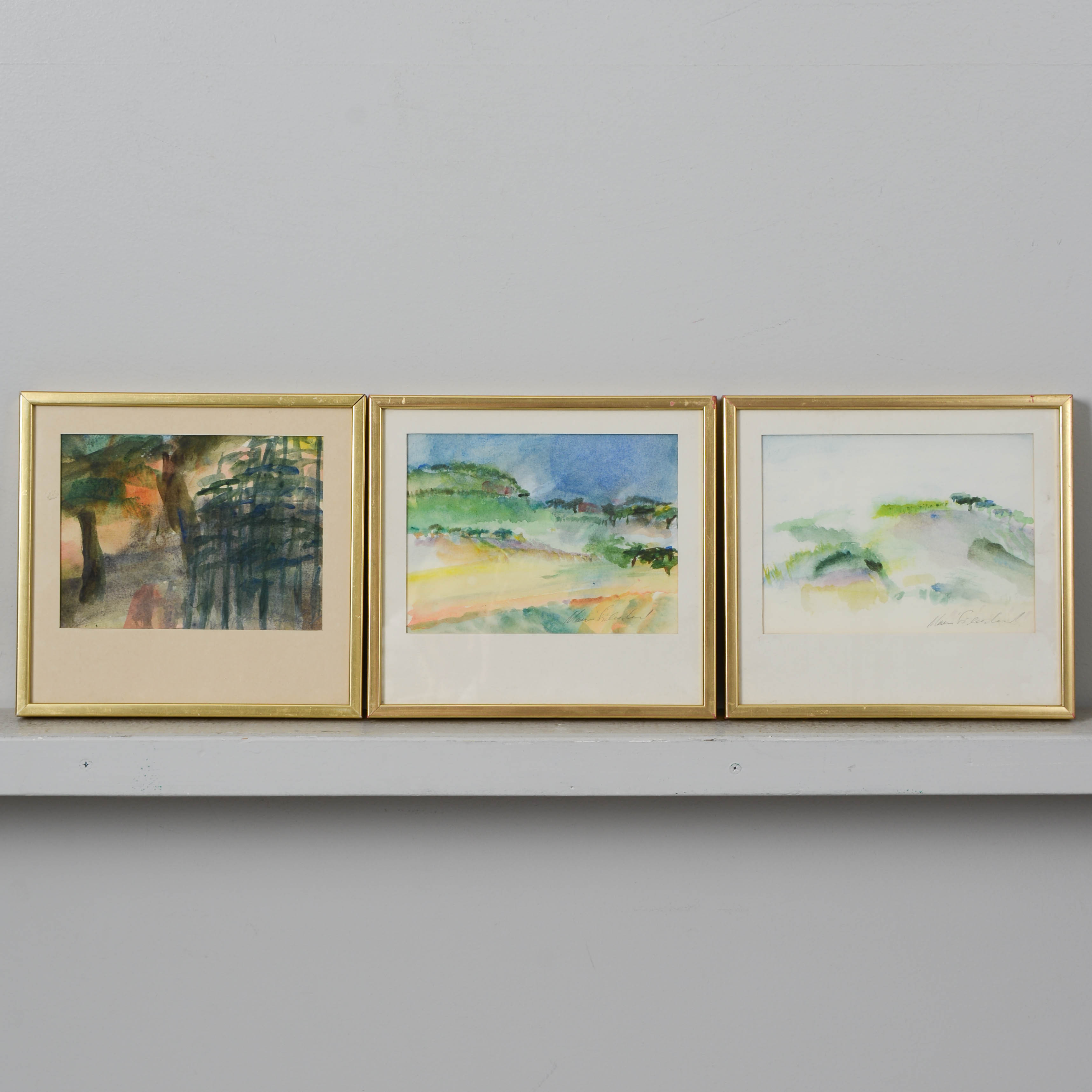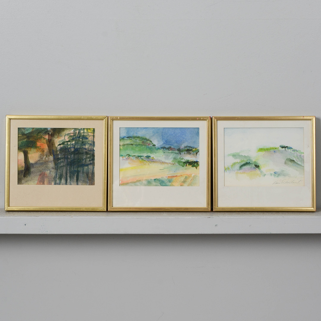 4845643. MARI SÖDERLUND. Landskabsmalerier, 3 stykker, akvareller, signeret.