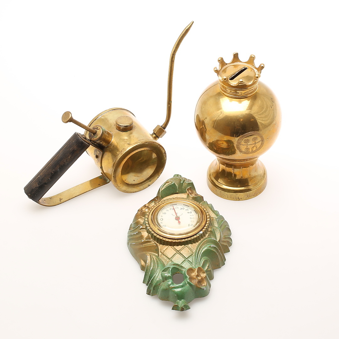 484723. OLIEDANKE, KØB. Messing. TERMOMETER, metal.