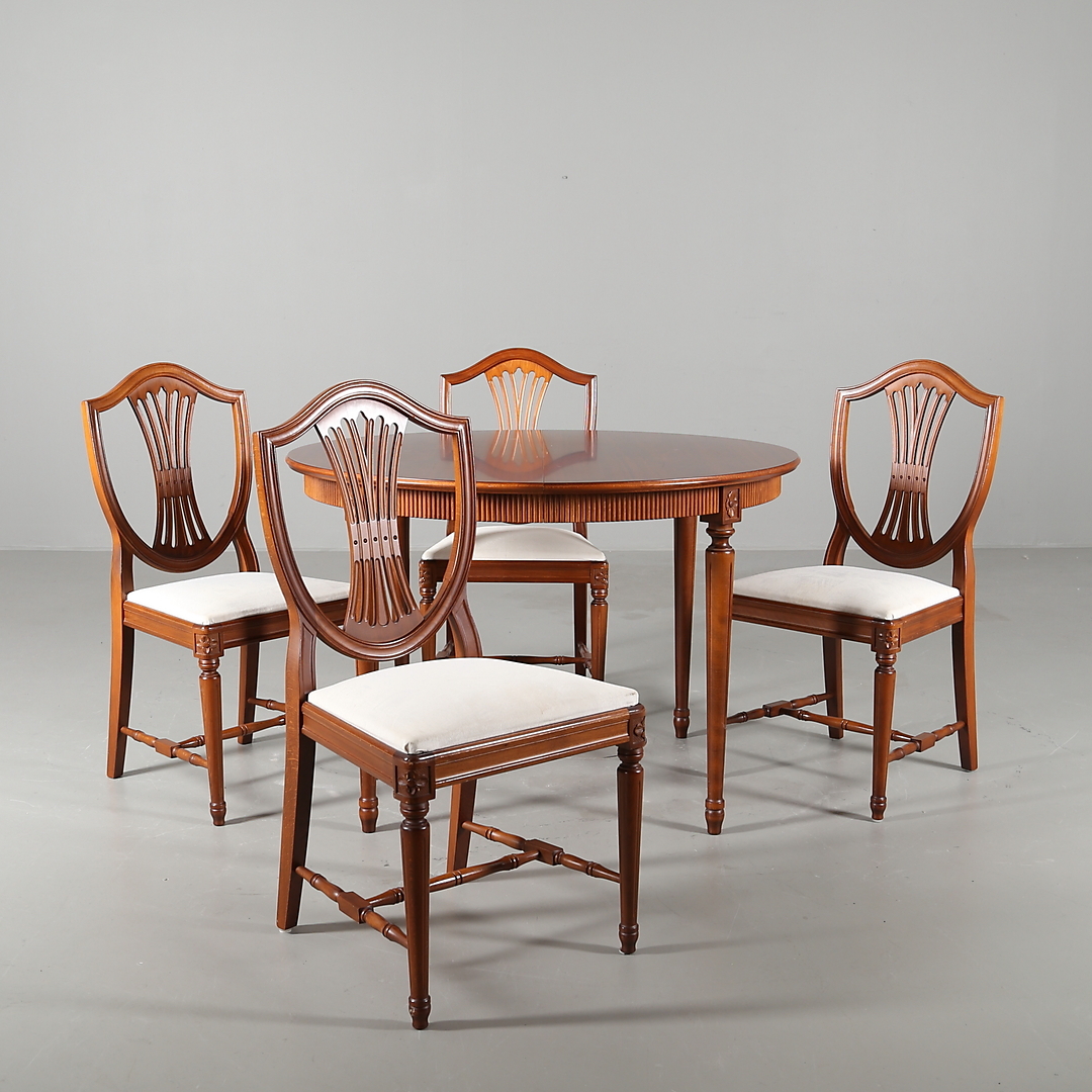 484738. SPISESTUESMØBLER, 5 stk., gustaviansk stil, 20. århundrede.
