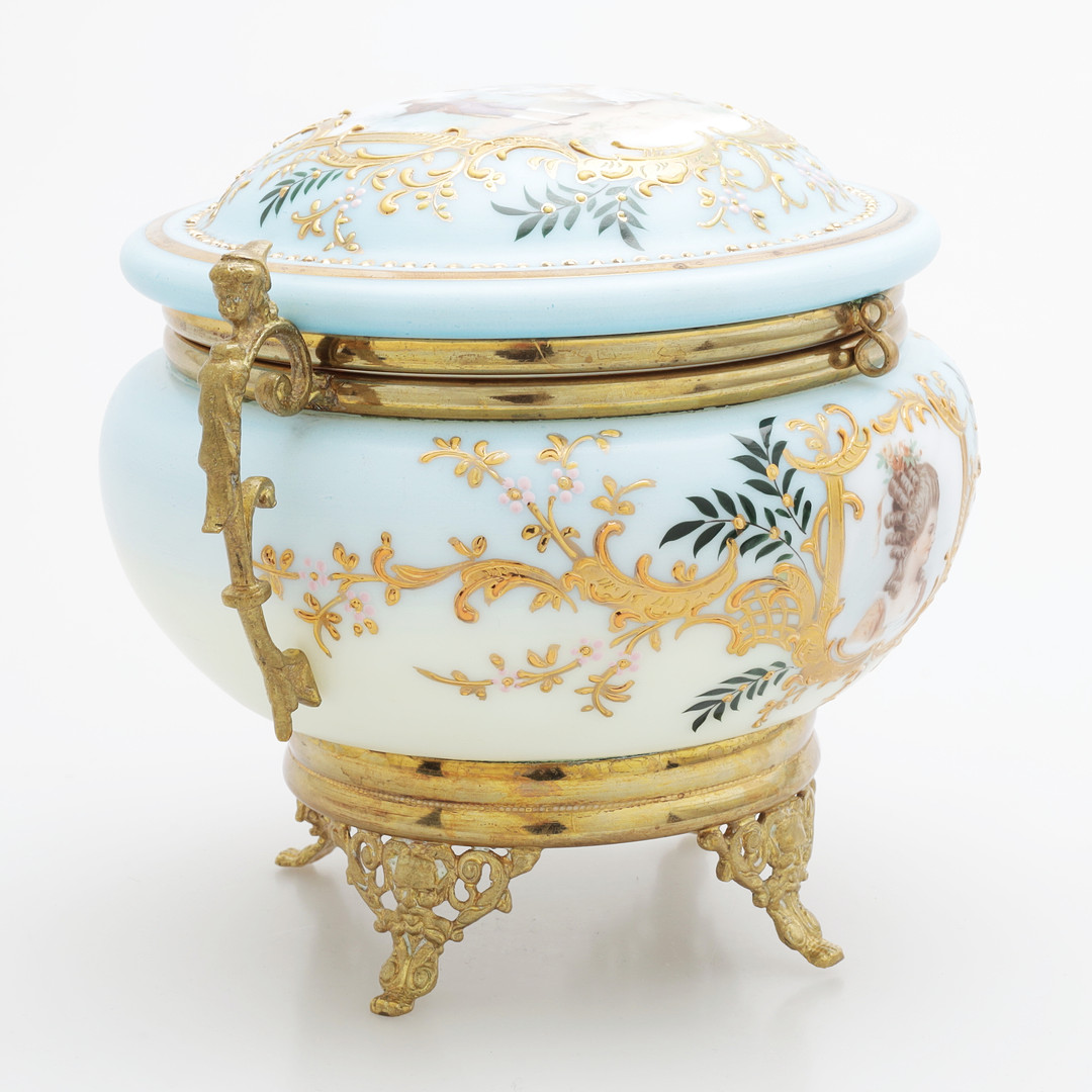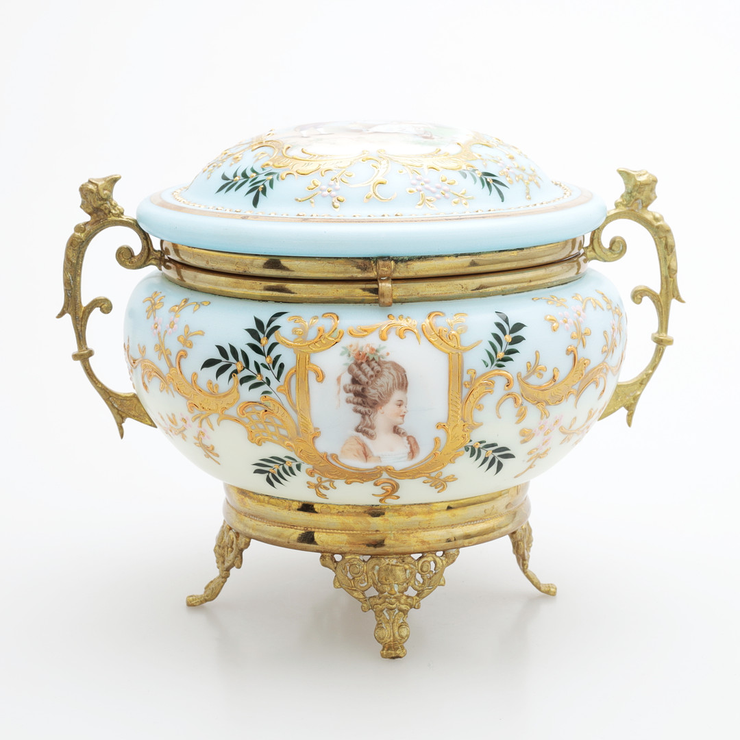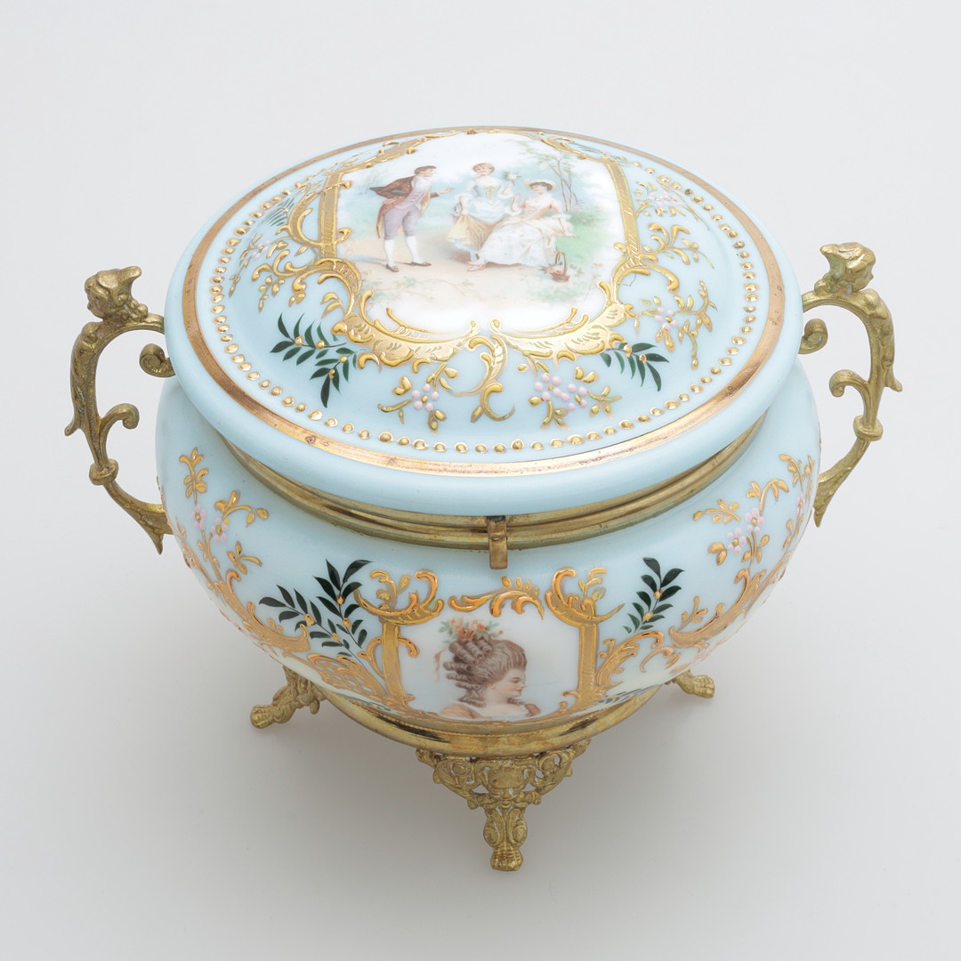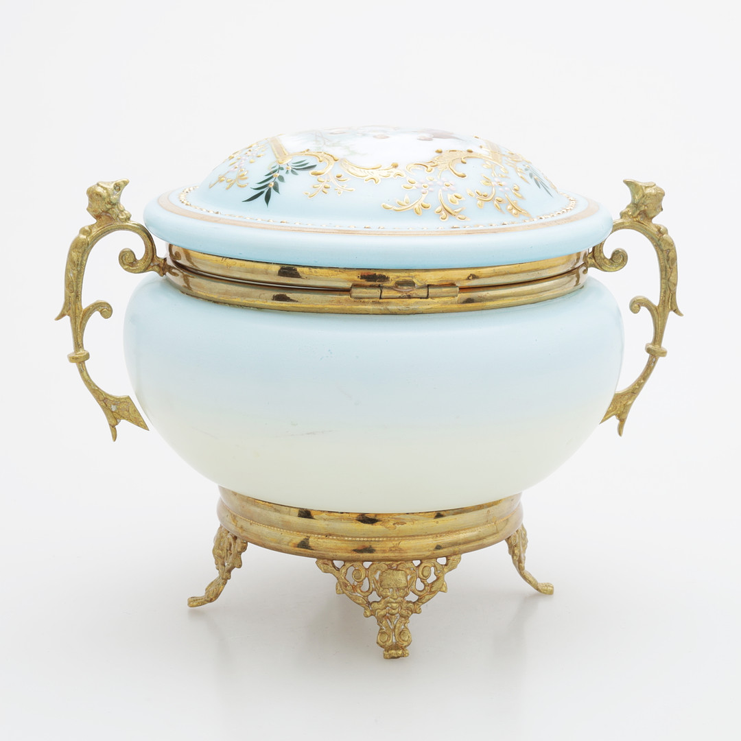 4848133. BONBONJÄR, emalje farvet glas/messing.