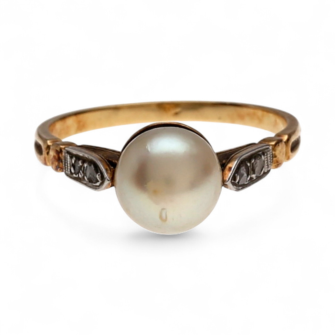 4849171. Perle- og diamantring, omkring 1940.