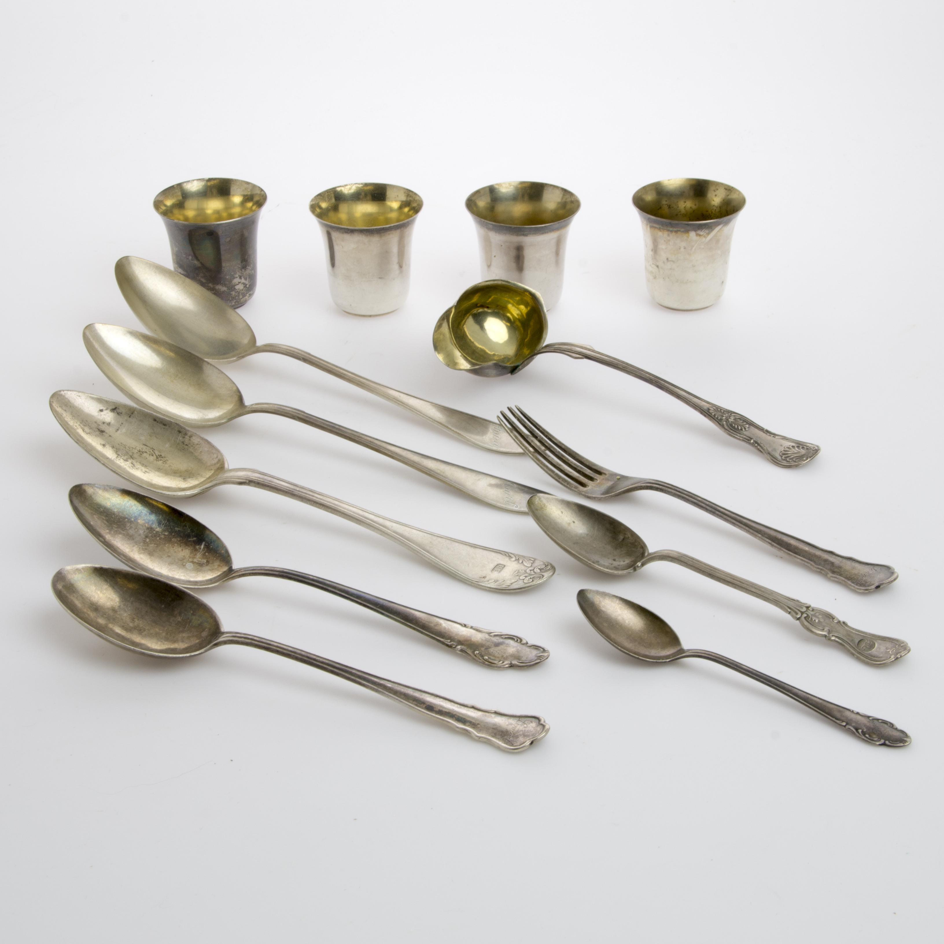485120. BESTIK OG KOP, 13 stk., sølv.