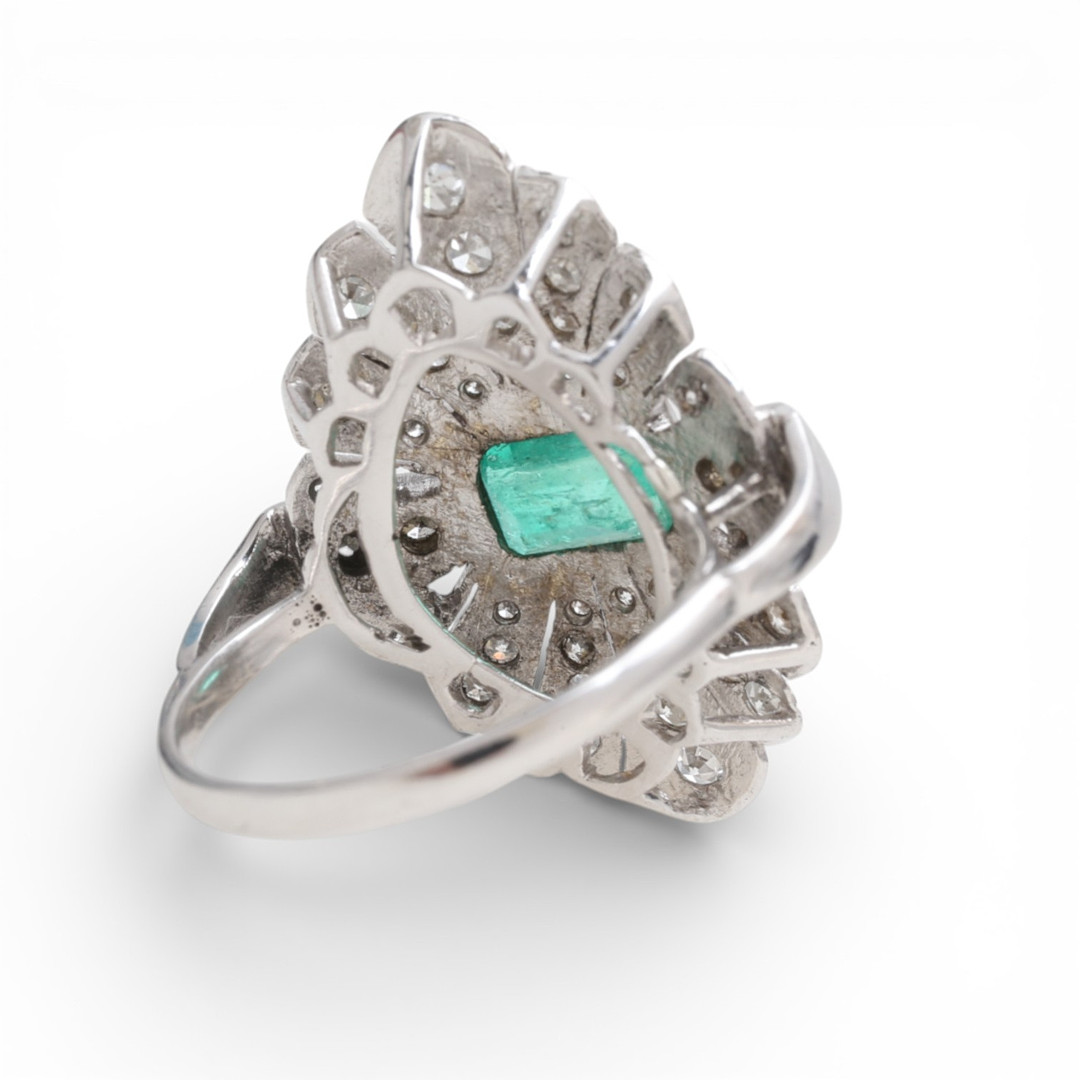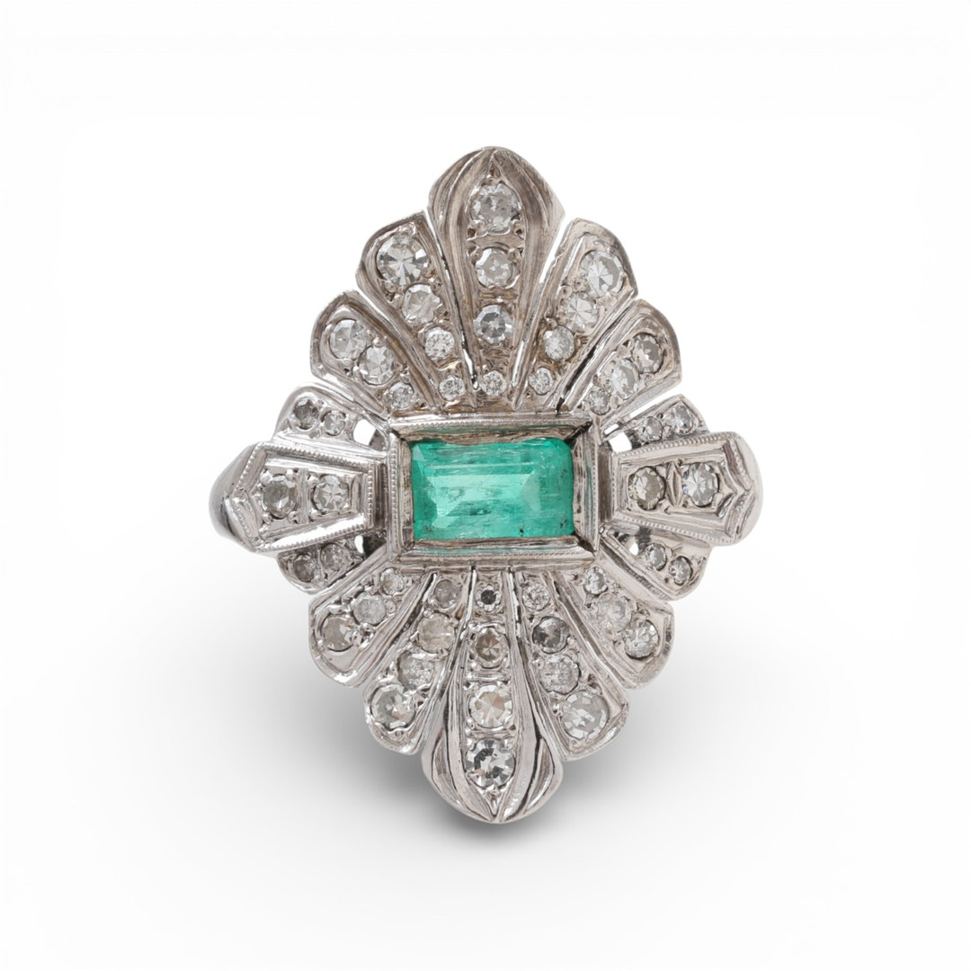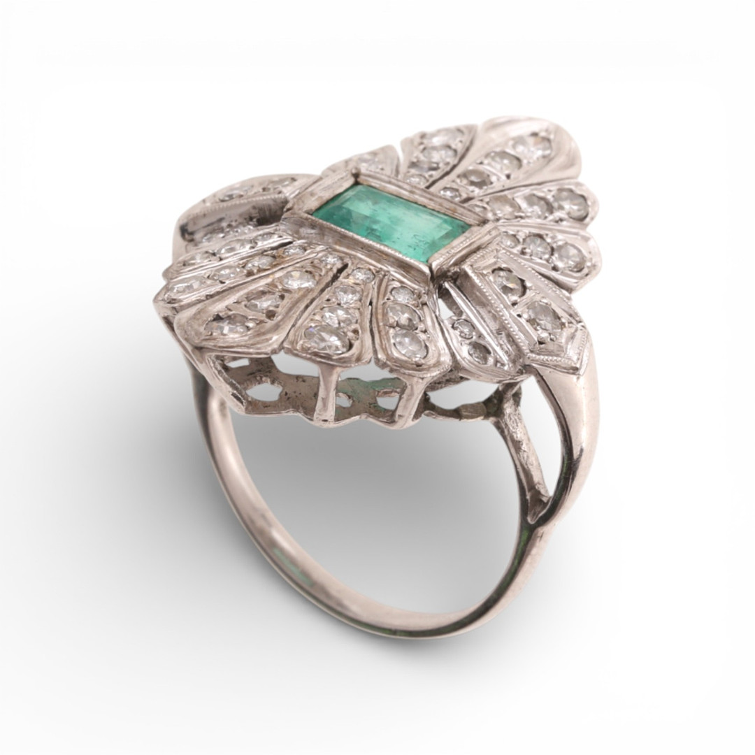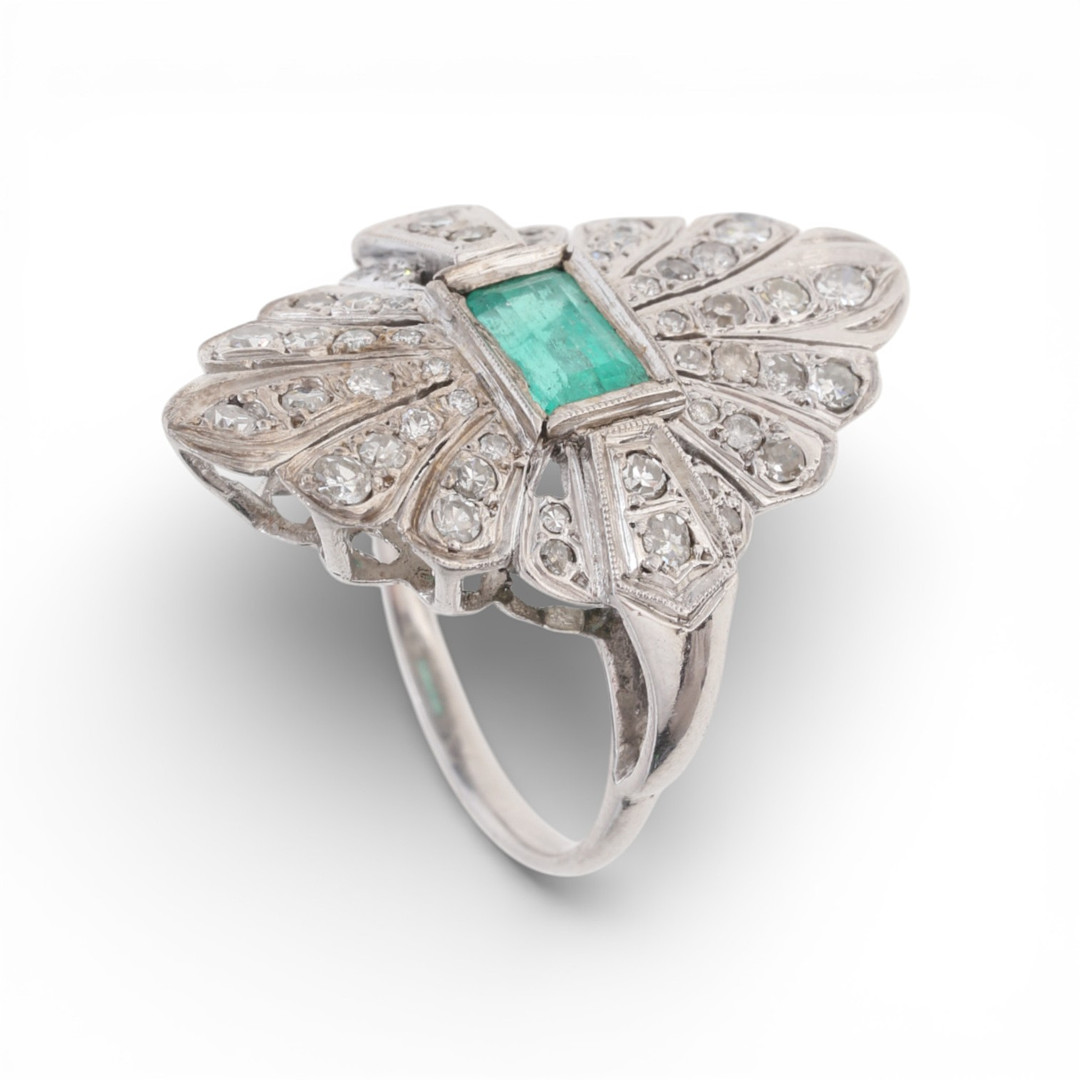 4851421. Art Deco stil smaragd og diamantring.
