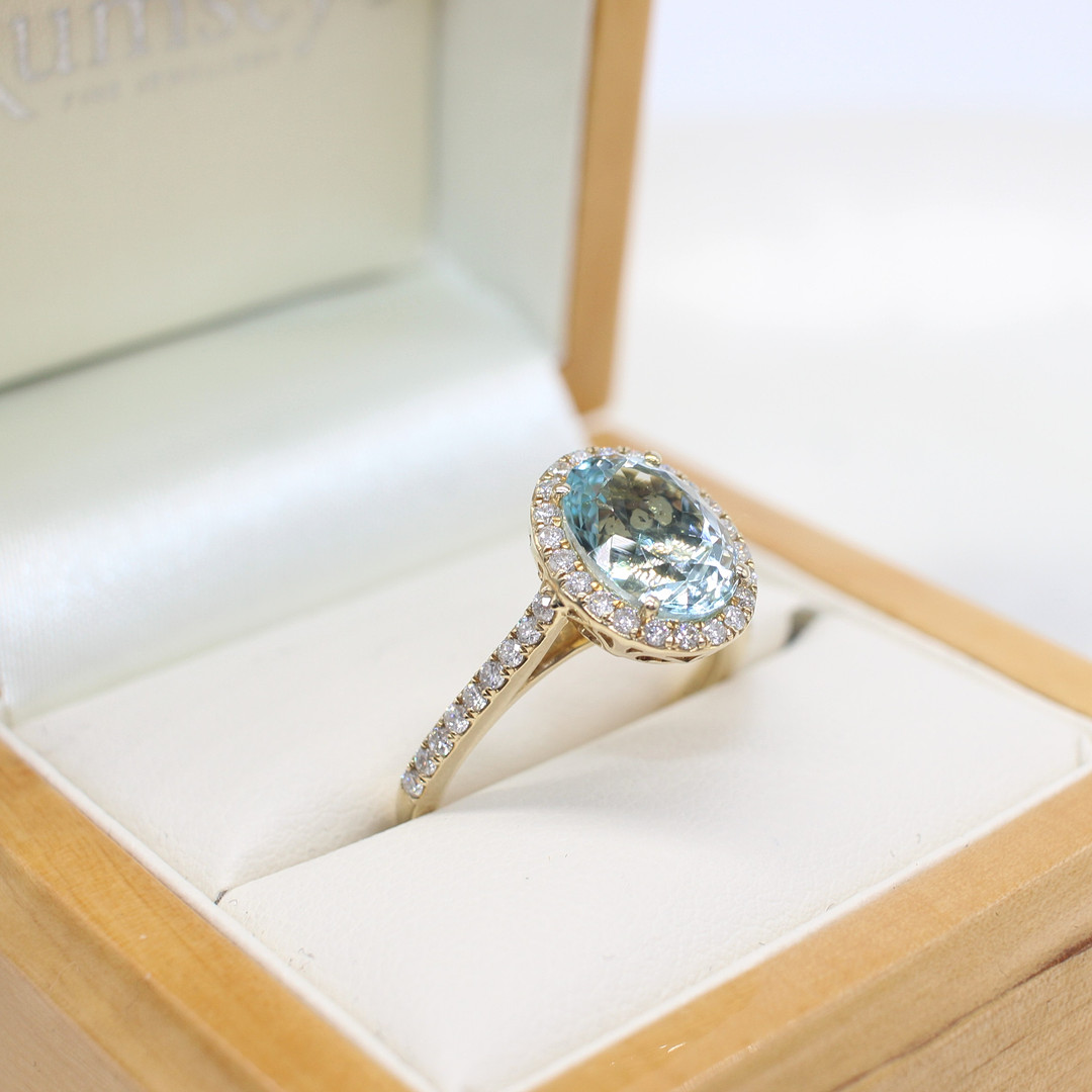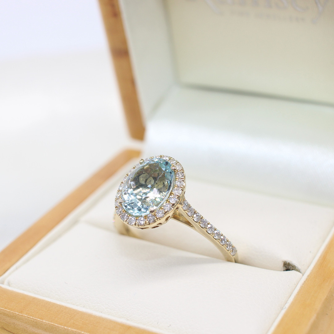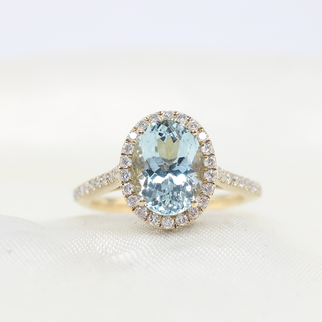 4852513. AKVAMARIN & DIAMANT HALORING.