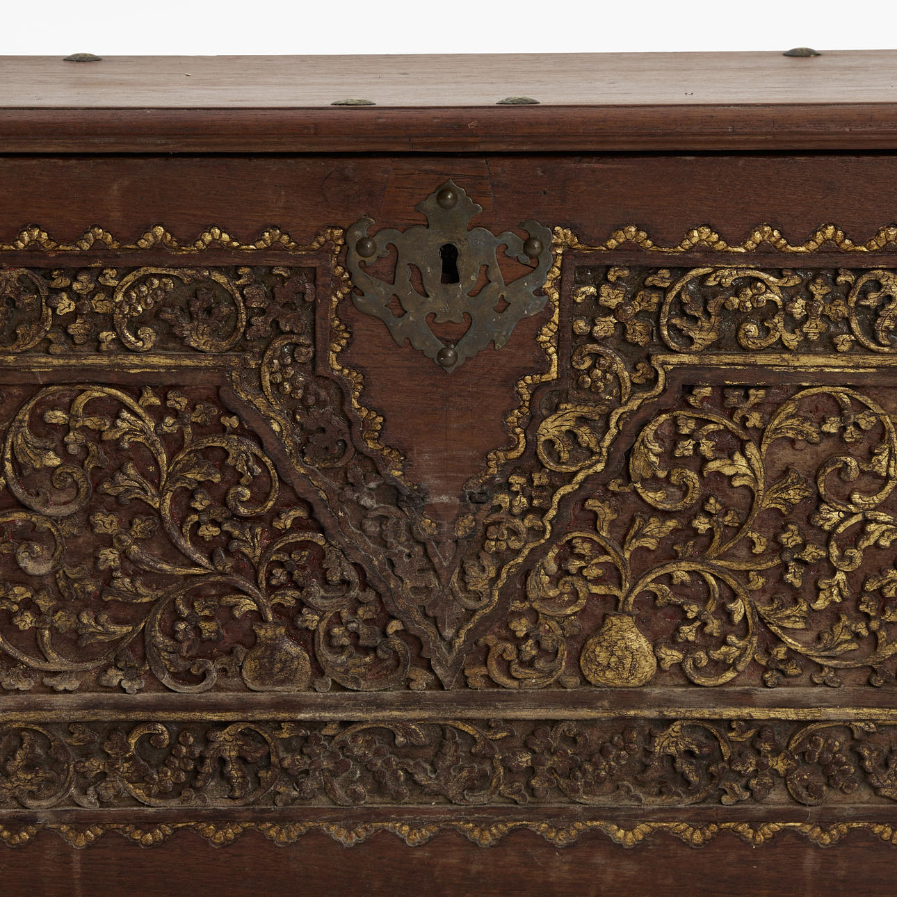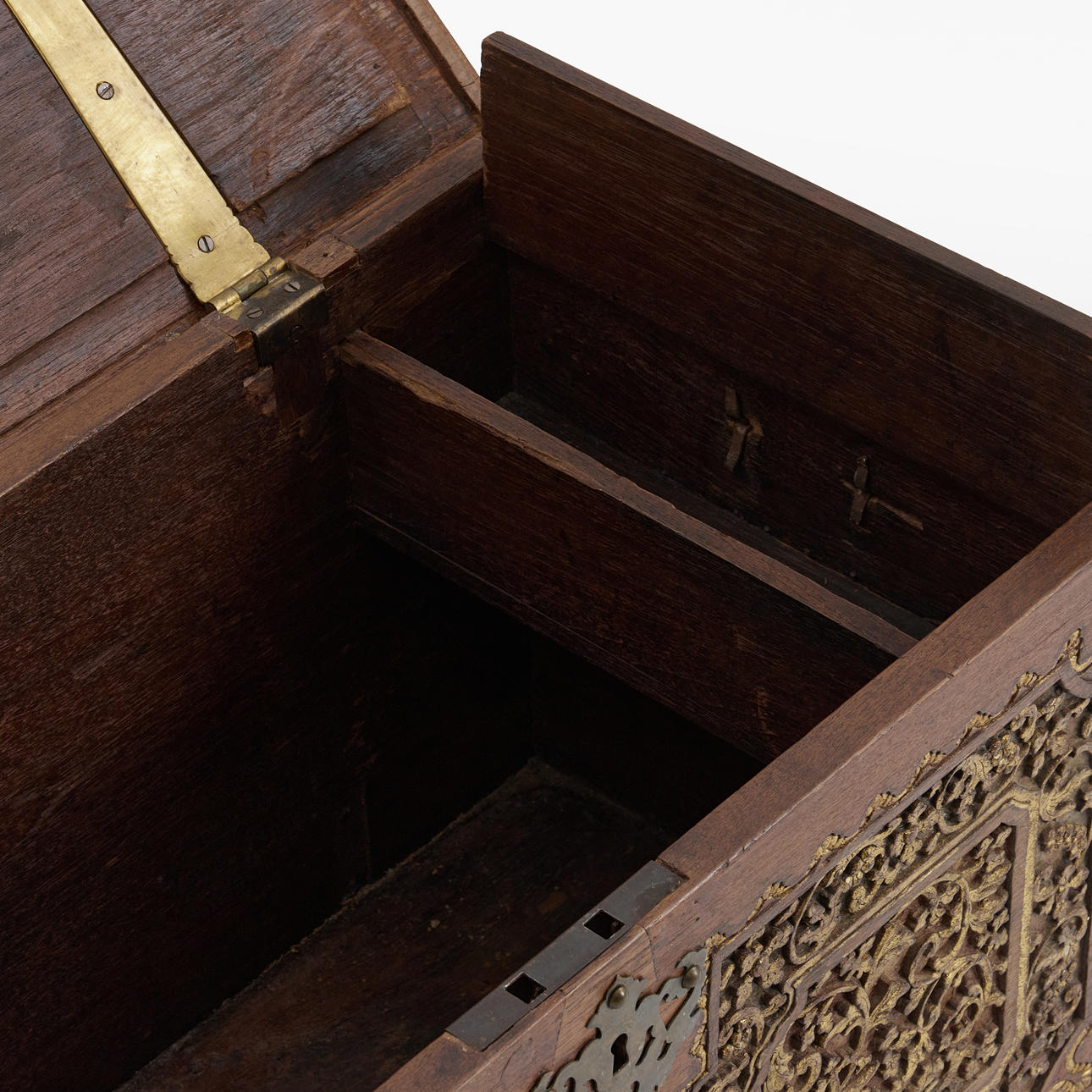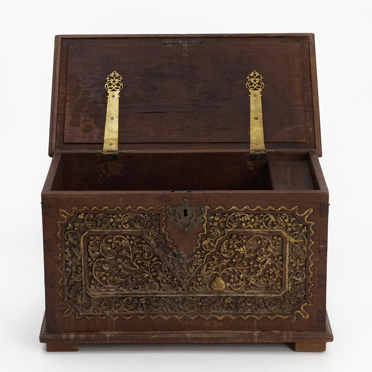 En kiste, orientalsk, skåret indretning.