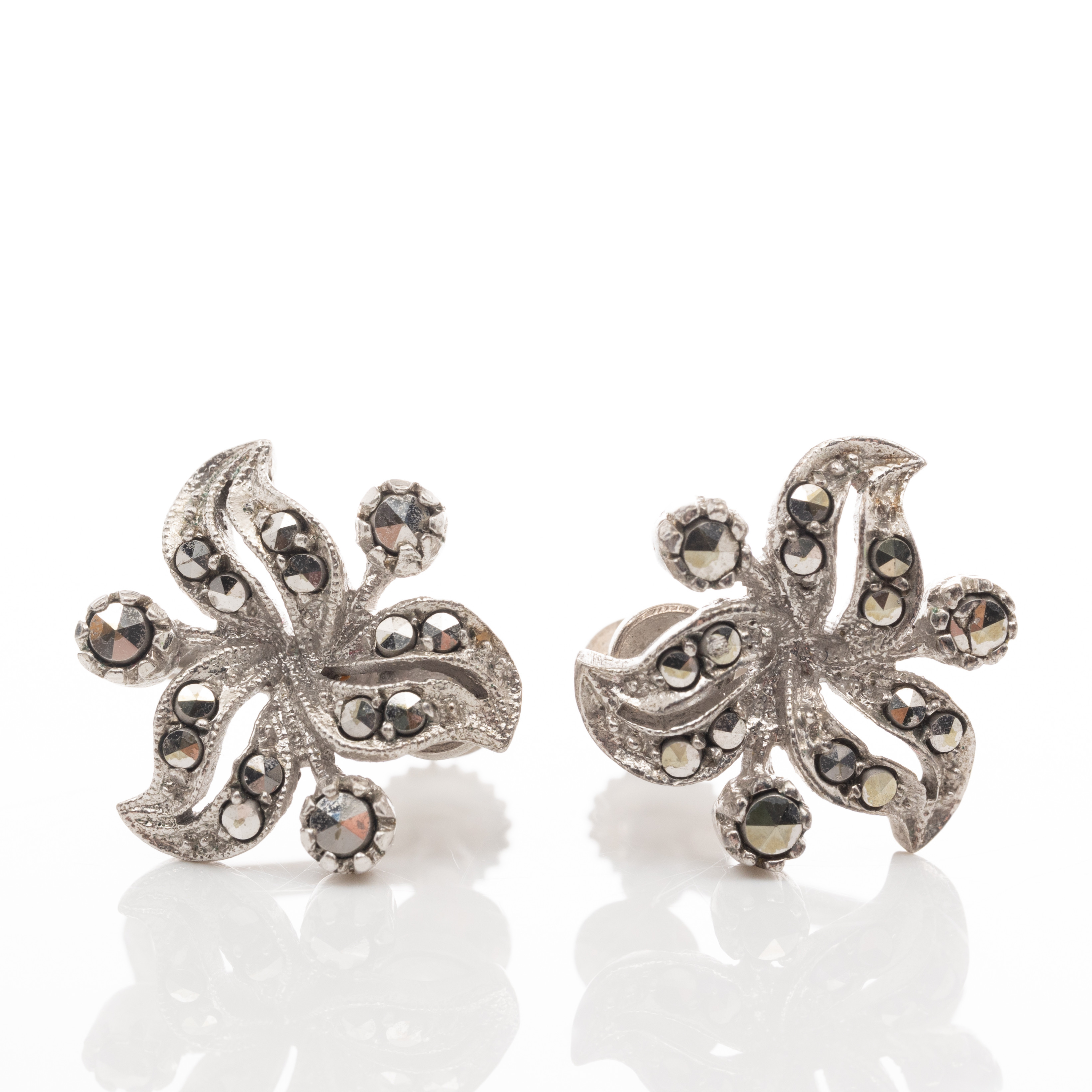 4855836. ØRERINGE, 2 par, Sølv, Marcasiter.