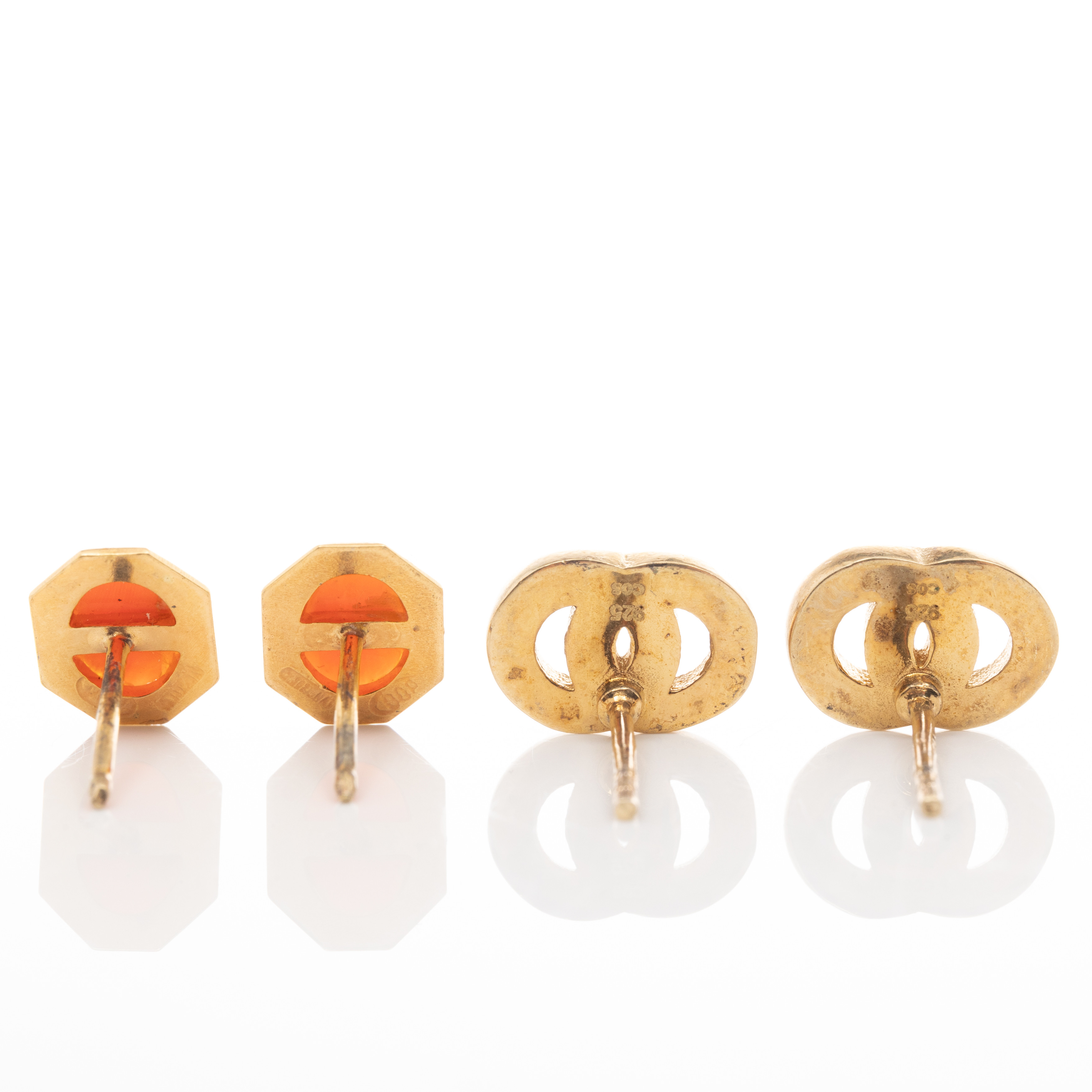4855900. ØRERINGE, 3 par, Forgyldt sølv.