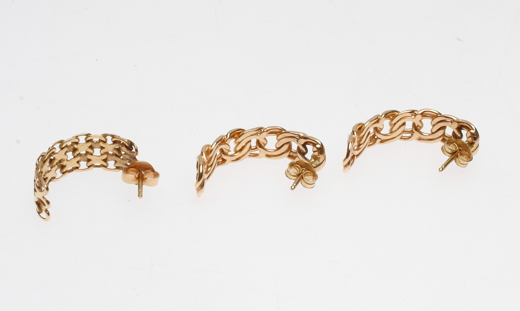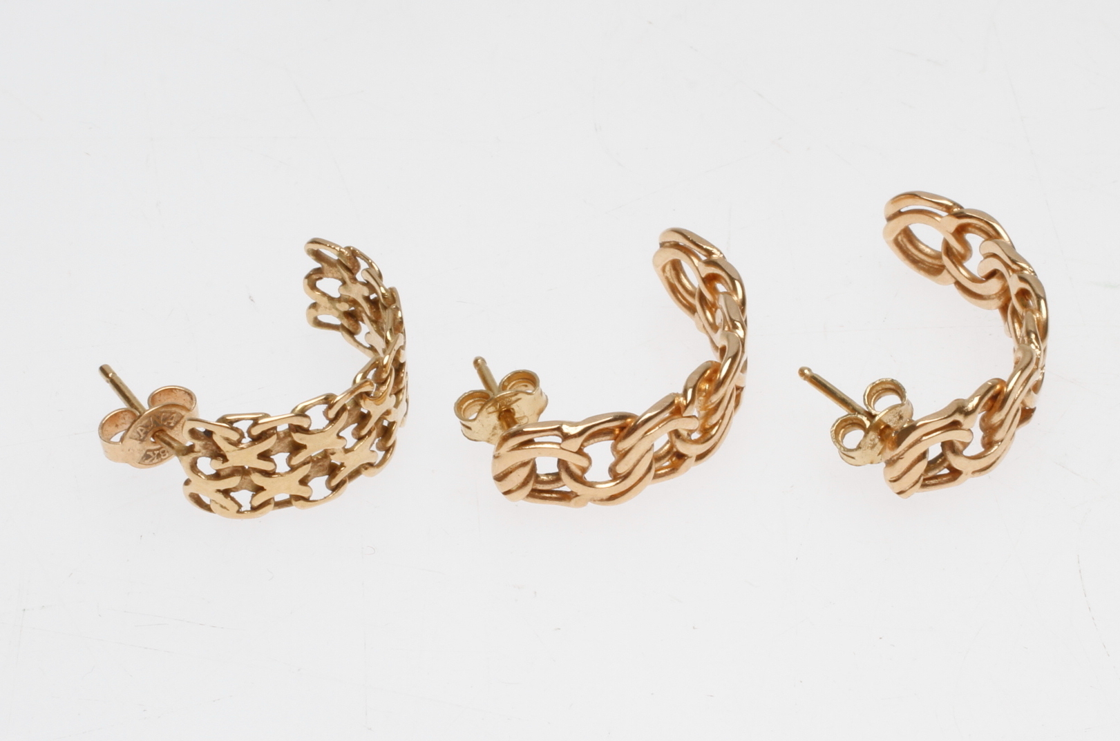 485702. ØRERINGE, 3 stk, 18k guld, vægt ca 9 gr.
