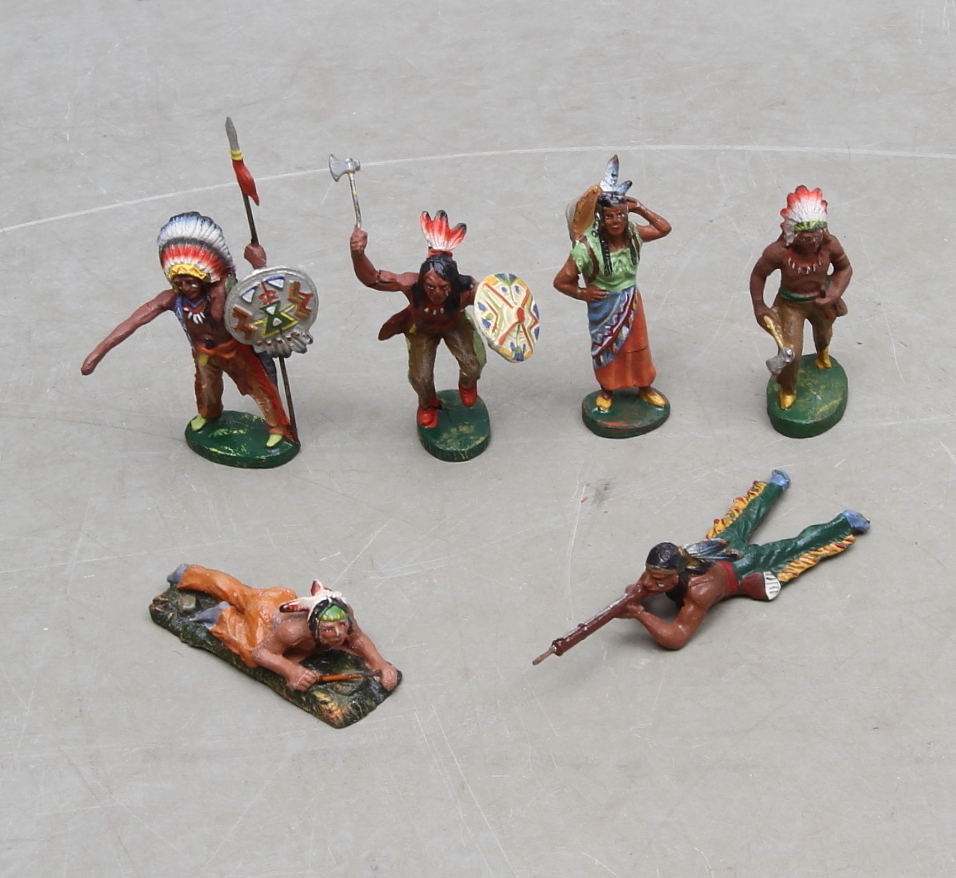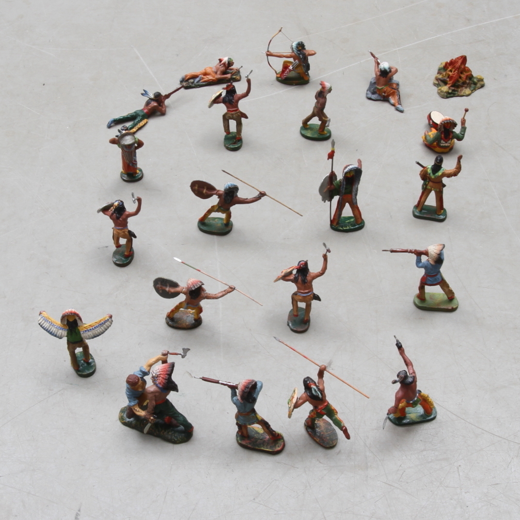 486125. ELASTOLIN omkring 20 vestlige figurer. indianere.