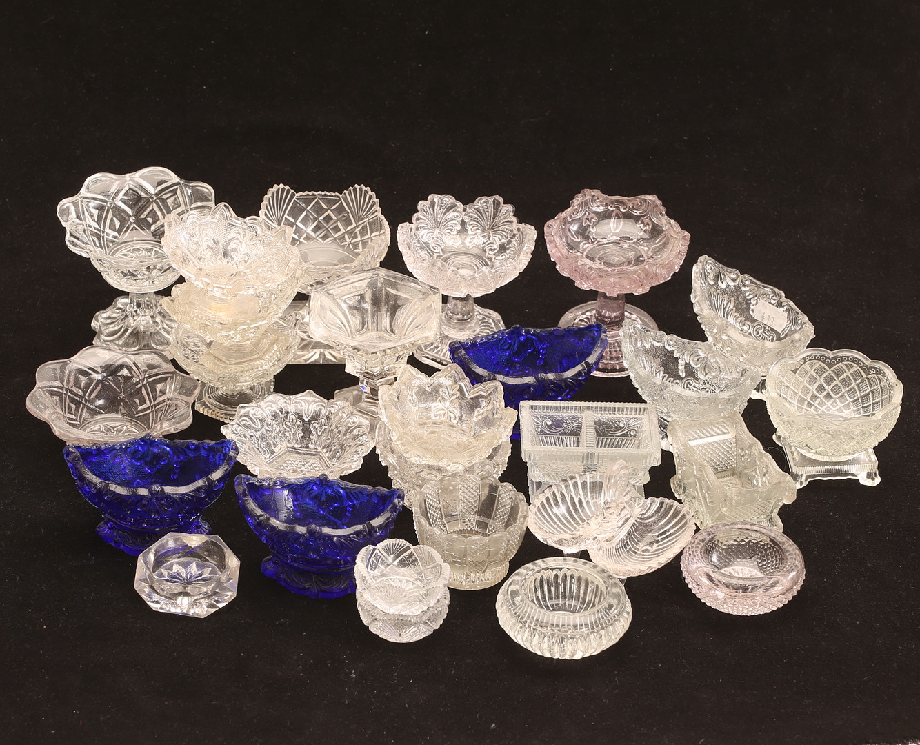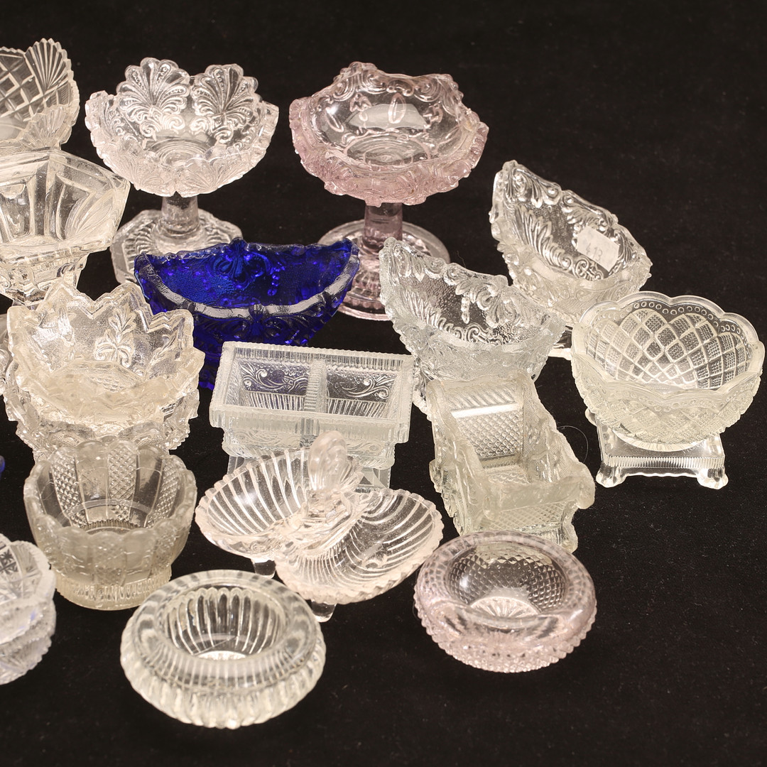 4861892. Saltbeholdere, 27 stk., presset glas, 1900-tallet.