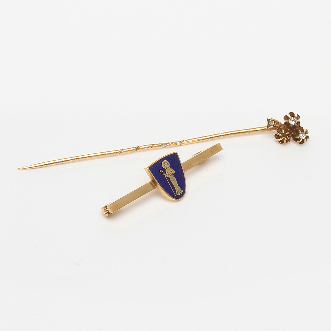 486226. PINDE OG BROCHE, 18 karat guld, 1900-tallet.