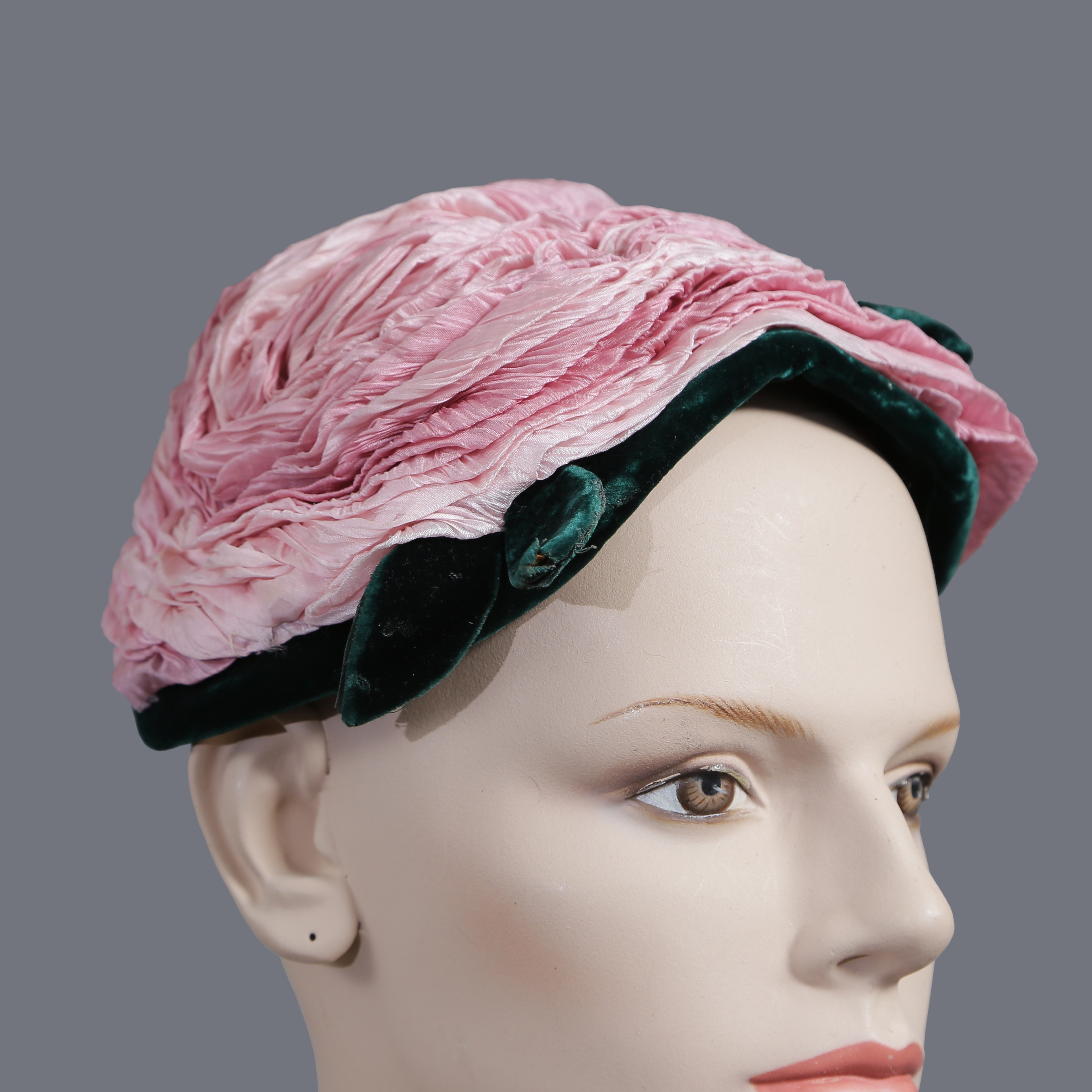 4863819. SAMLING AF HATTER/HUER, LYSERØDE TONER, 20. ÅRHUNDREDE.