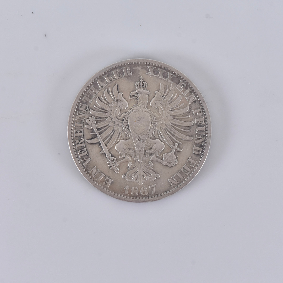 4870536. EN SØLVMØNT, 1 Vereinsthaler, Preussen 1867.