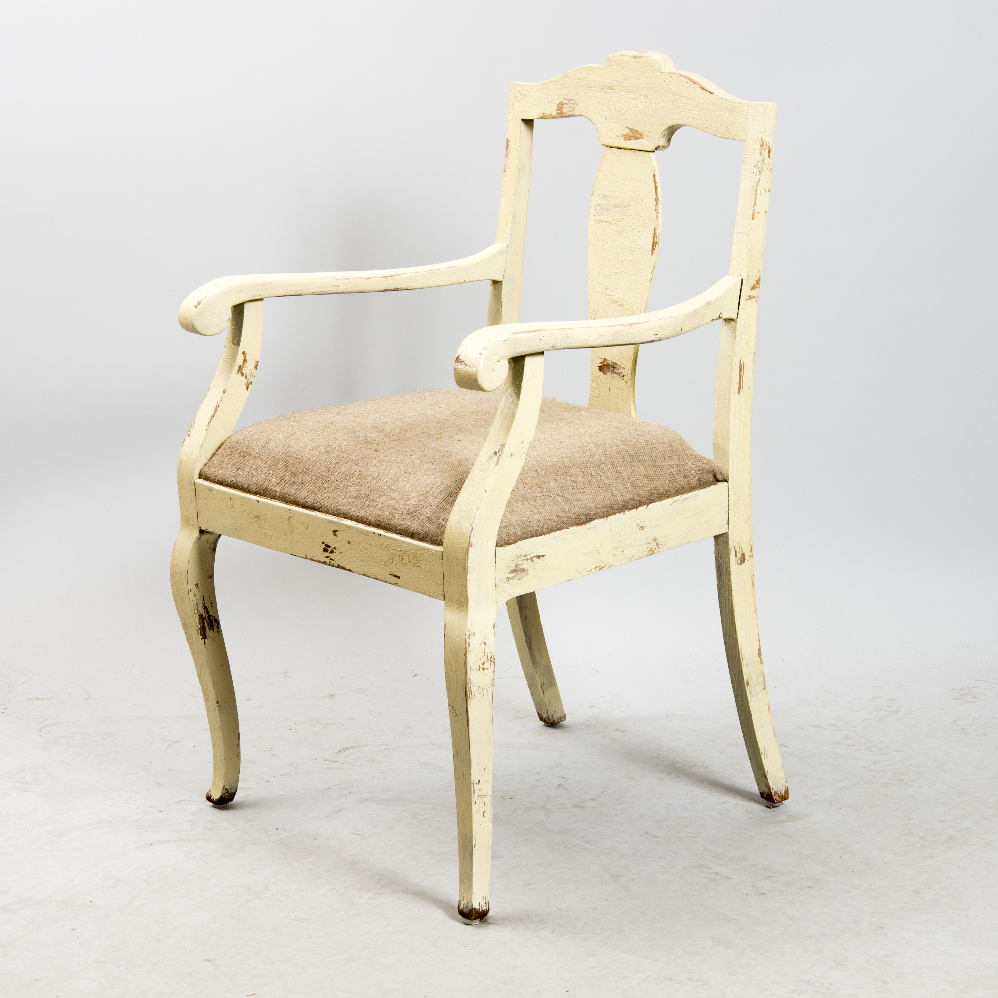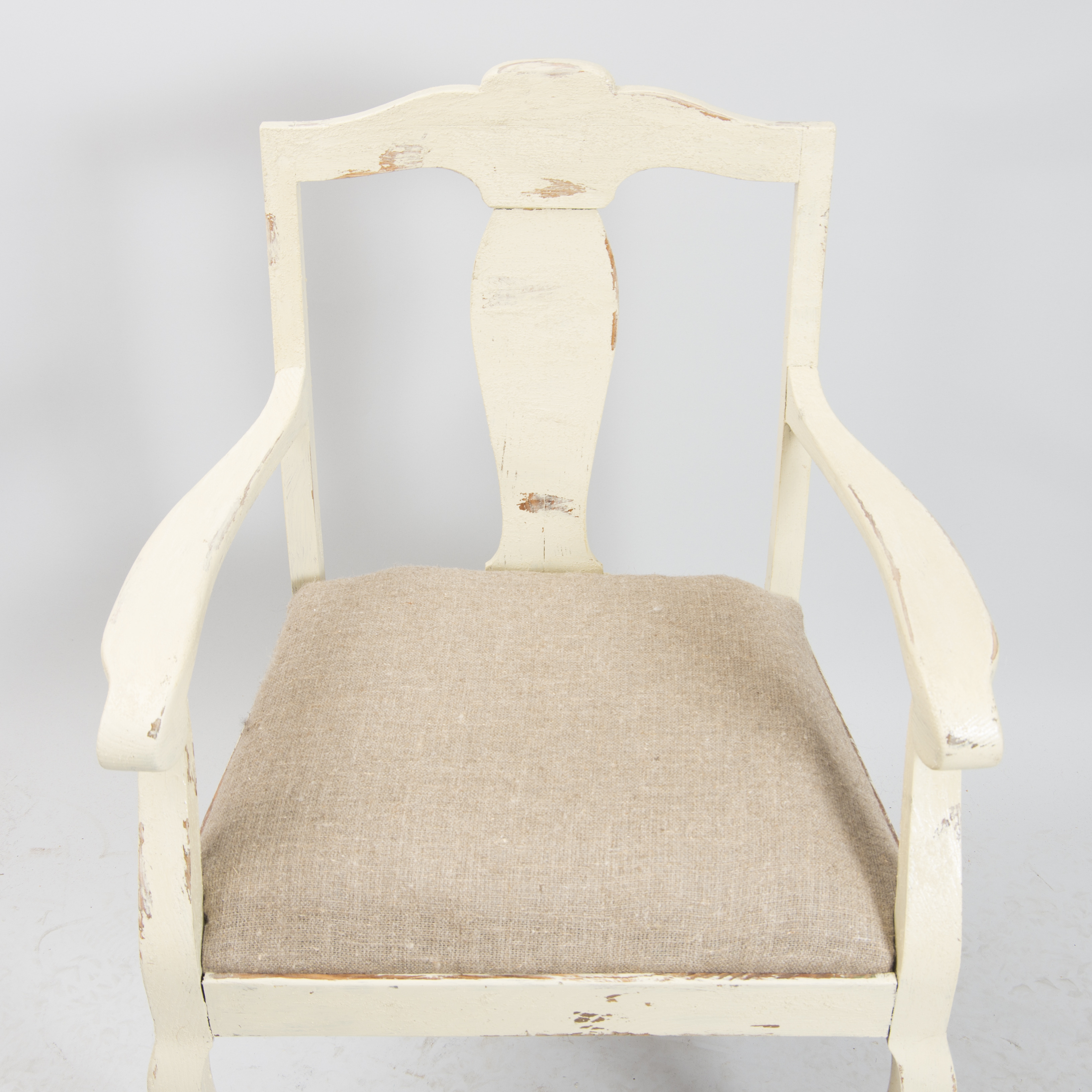 487298. LÆNESTOL, hvidmalet med linned polstring, art nouveau.