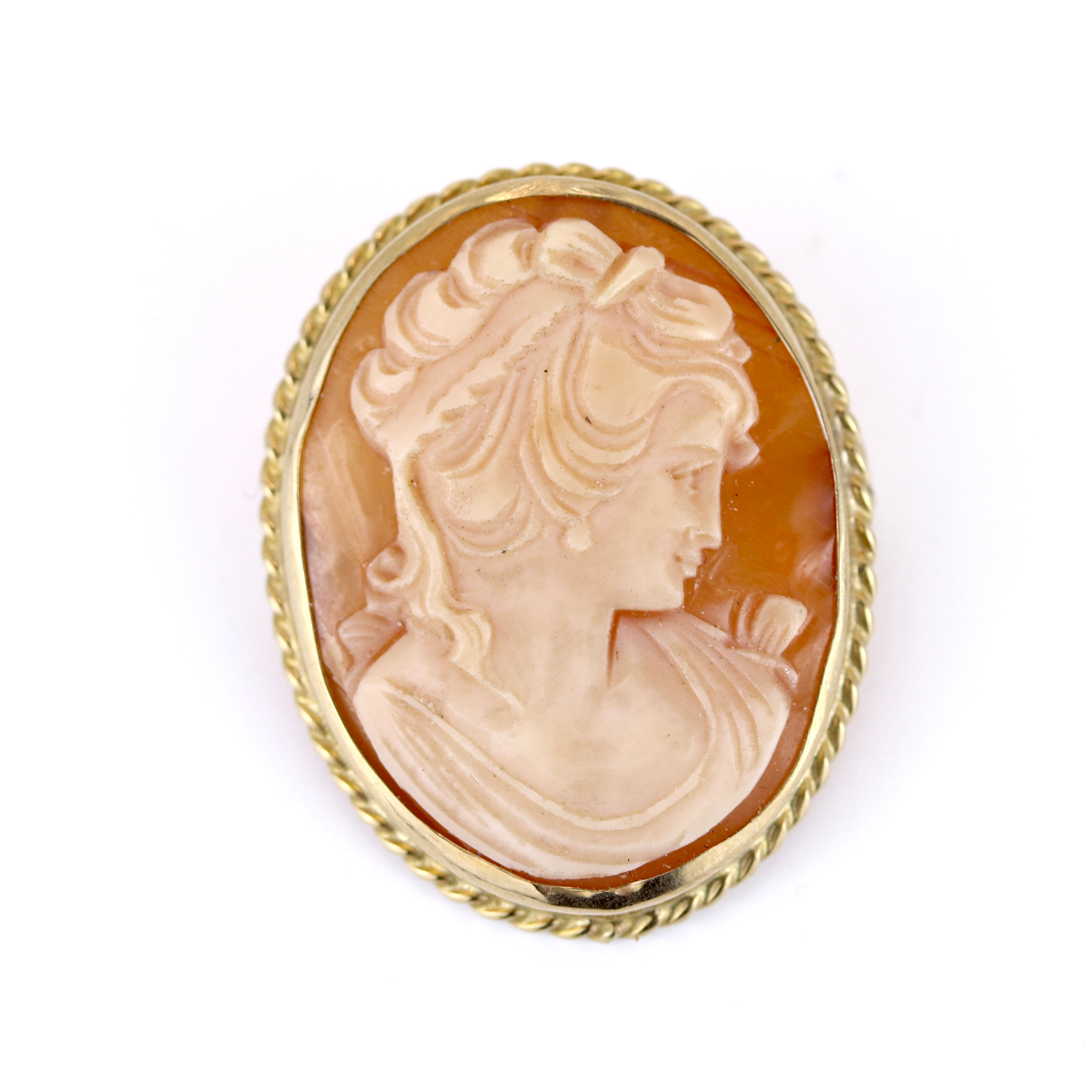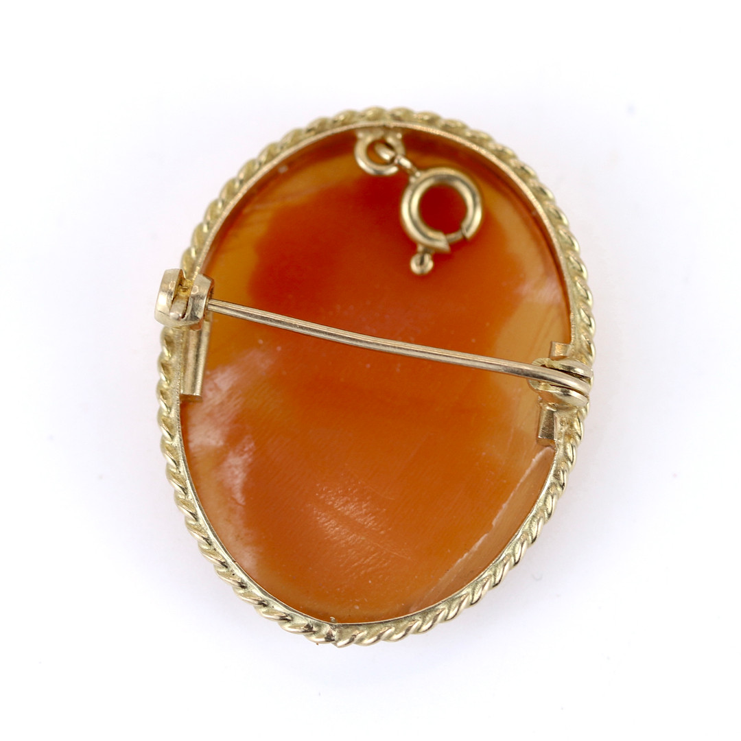 4874733. 9 KARAT GULDMONTERET CAMEO BROCHE.