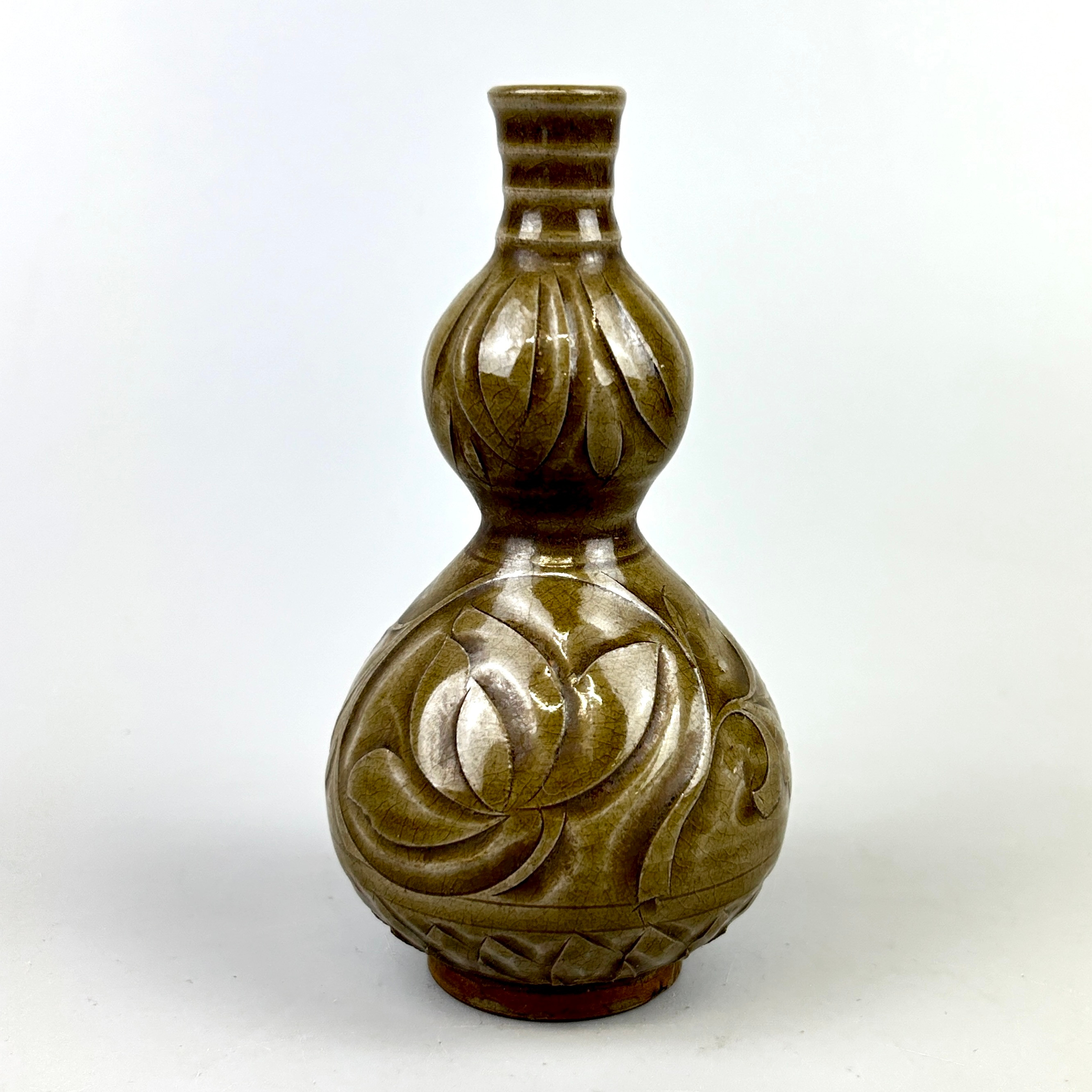 4874994. KINESISK GRØN GLASERET & SGRAFFITO KALEBASSVASE.