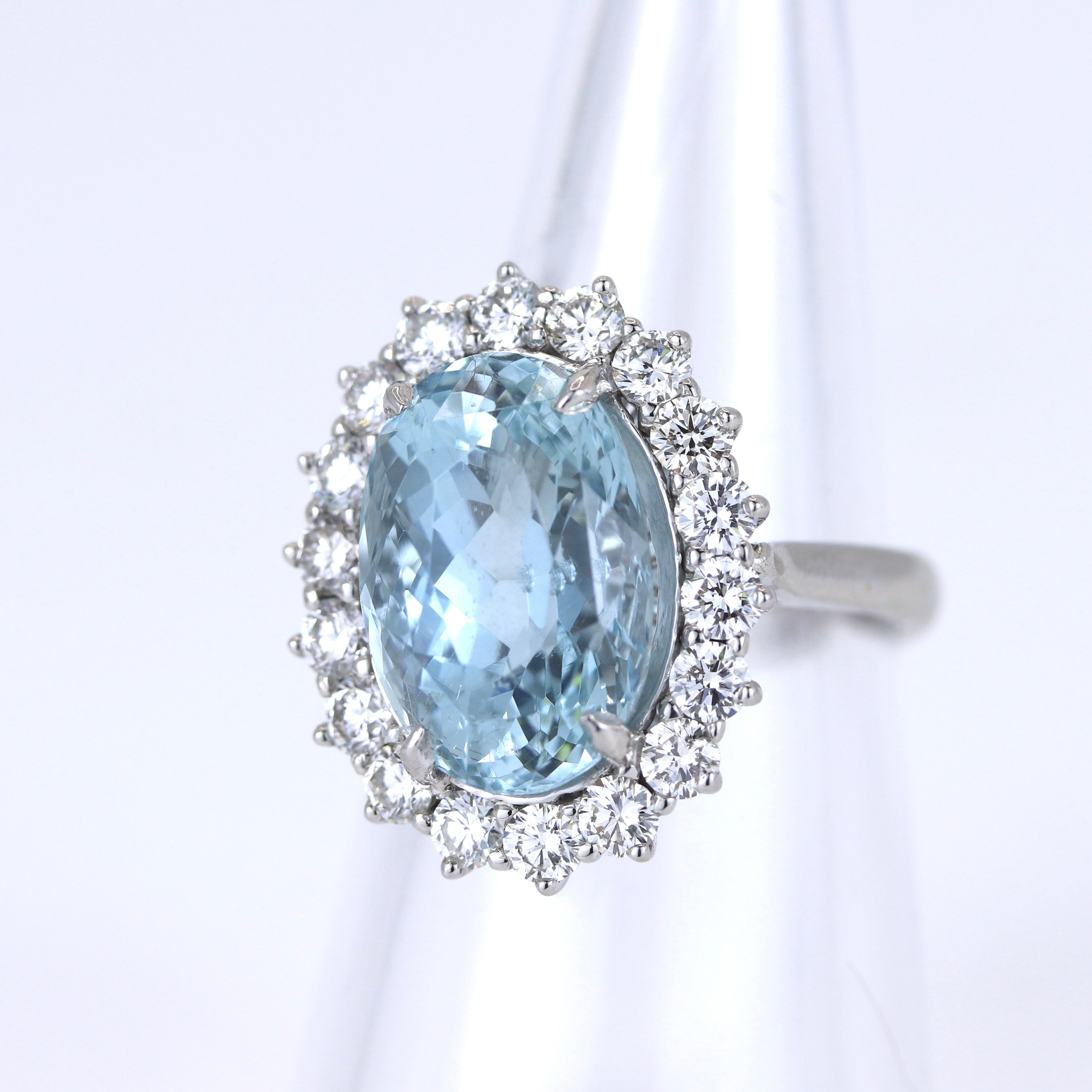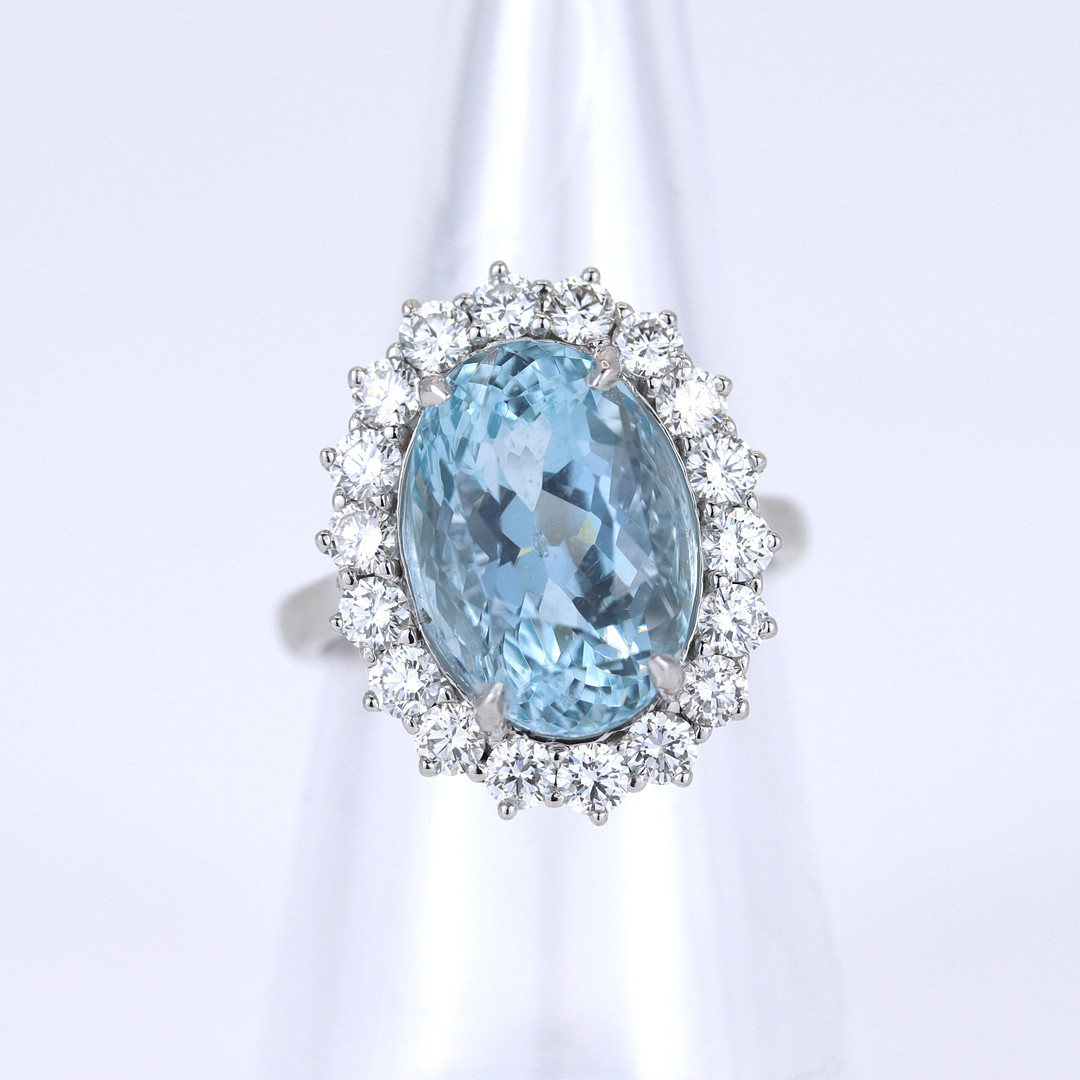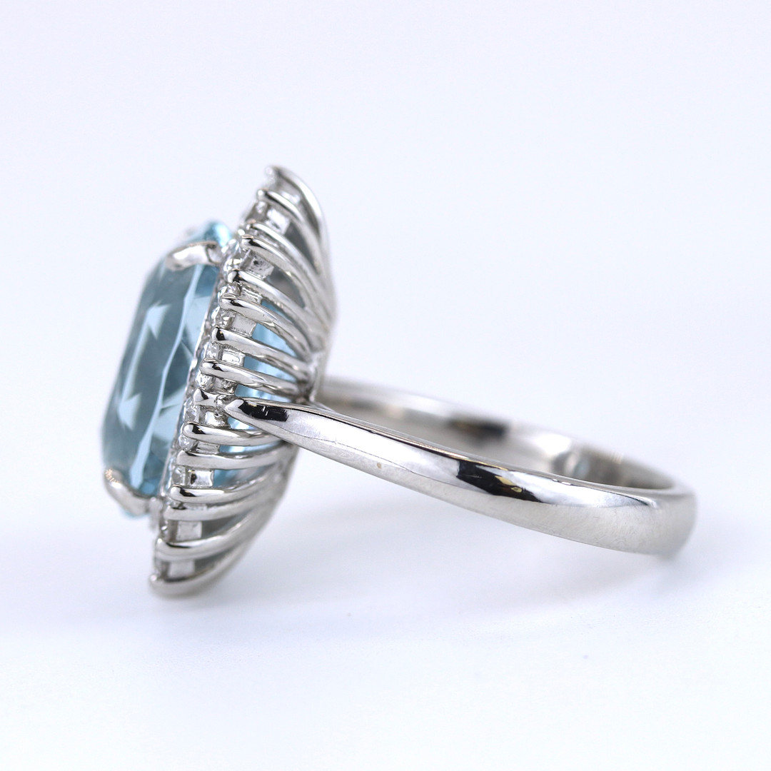 4877050. PLATIN AKVAMARIN & DIAMANT SÆT RING.