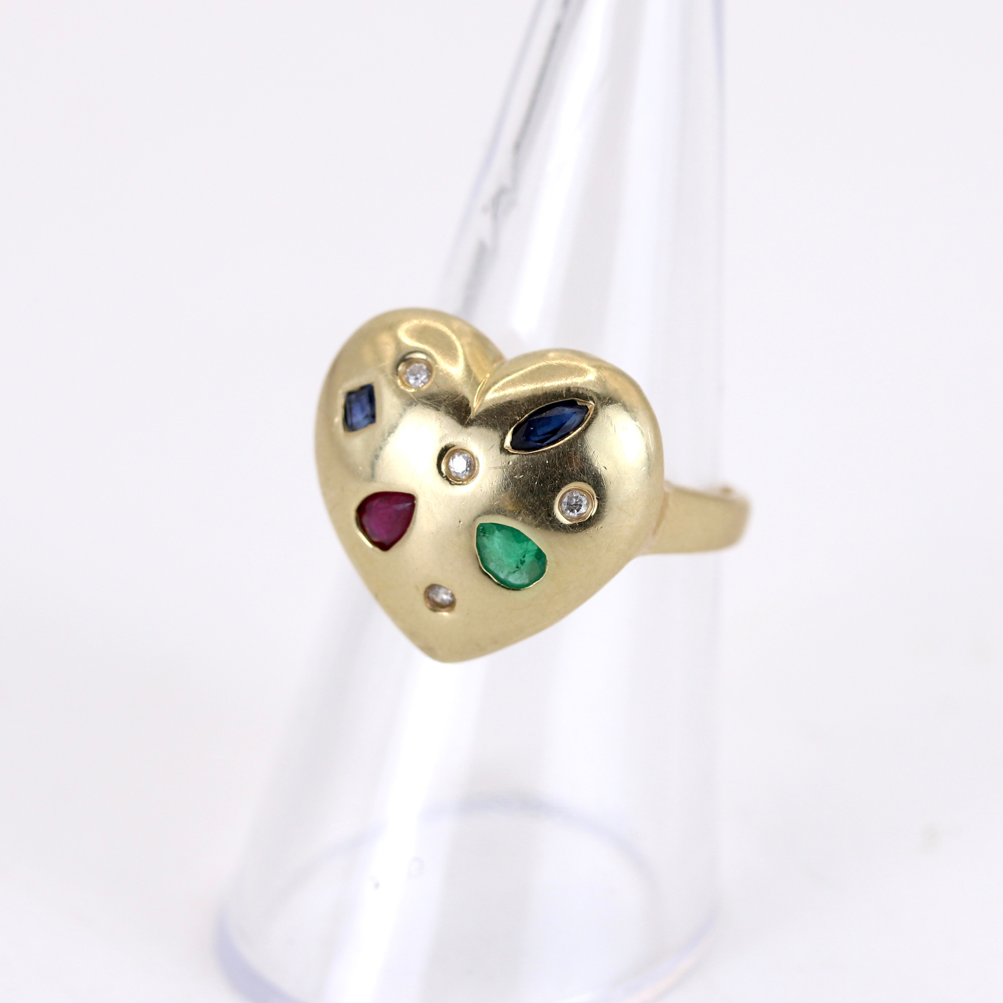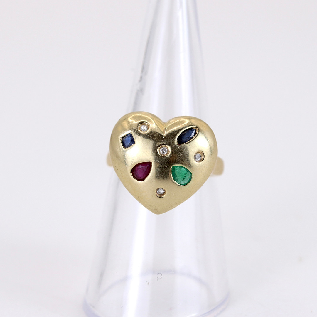 4877070. 14KT HJERTEFORMET RING SÆT MED DIAMANTER MV.