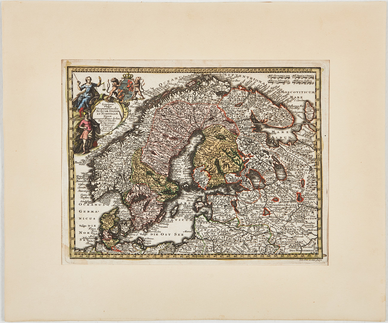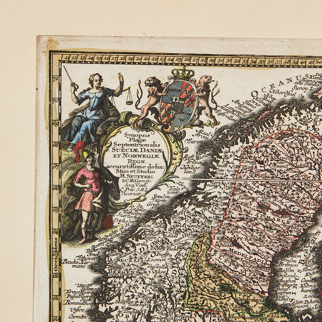 4877164. SEUTTER, MINDRE KORT OVER SKANDINAVIEN, ca 1730.