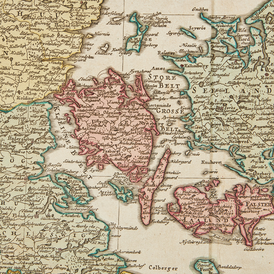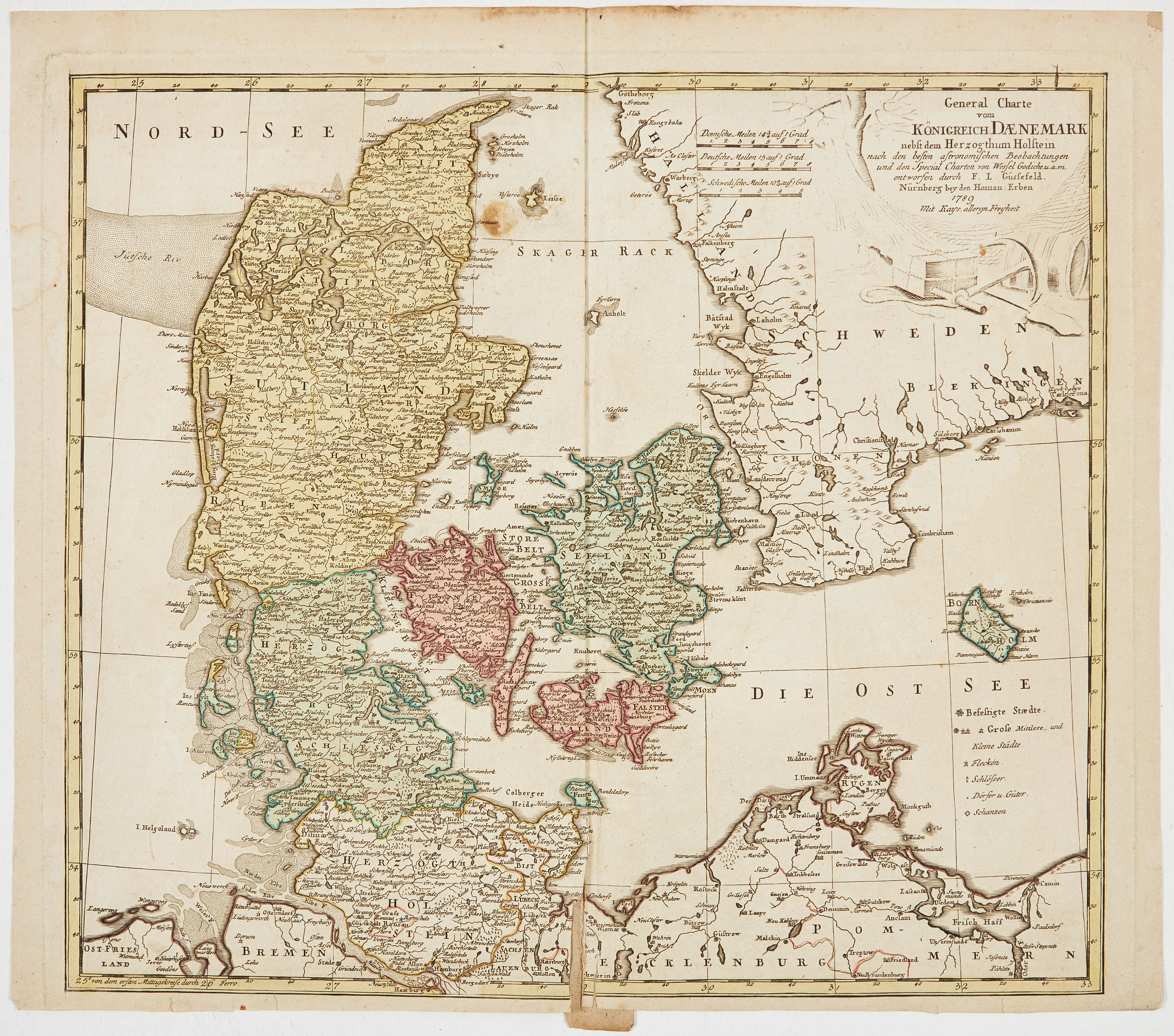 4877177. KORT OVER DANMARK, GÜSSEFELD, ca 1790.
