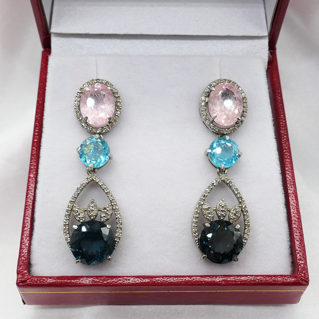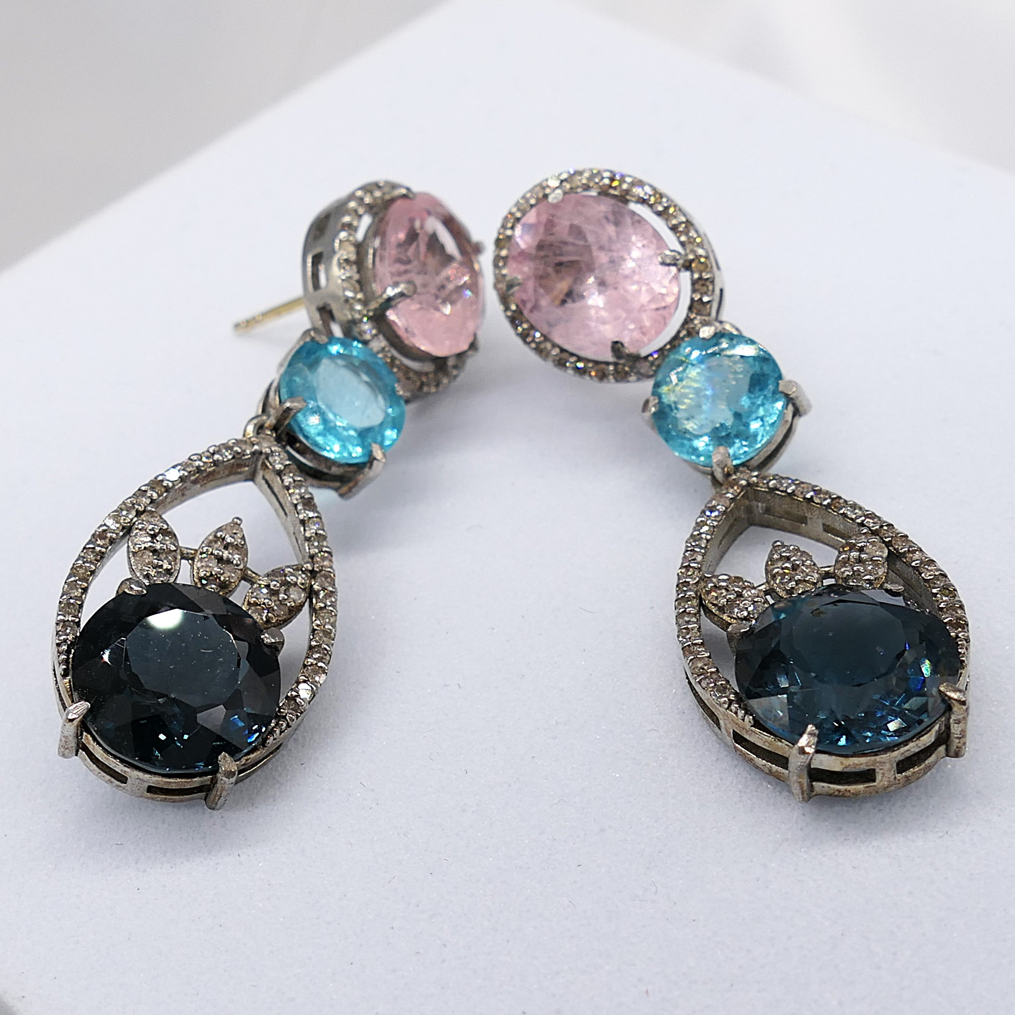 4877898. TURMALIN, APATIT & DIAMANT dråbeøreringe.