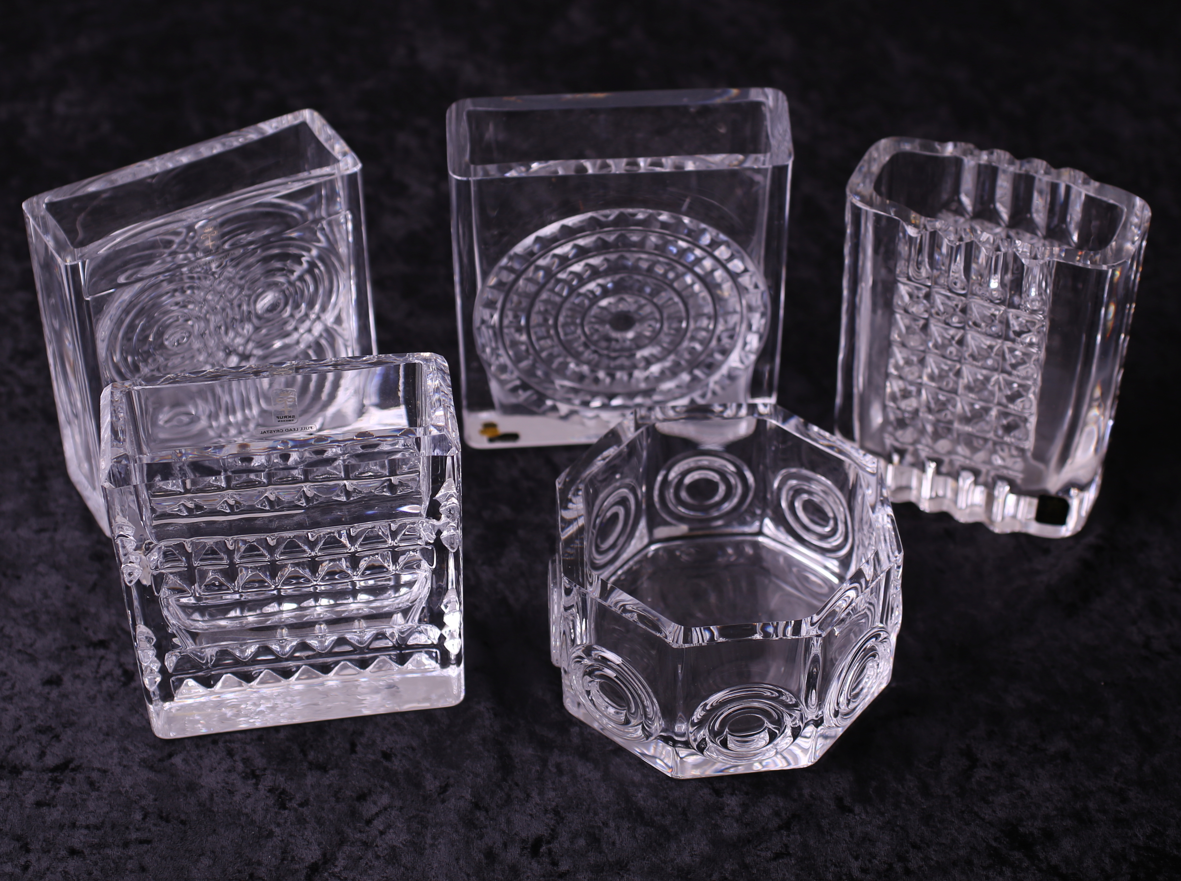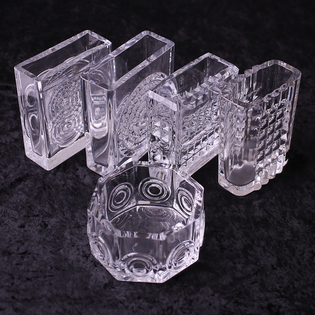 488394. GLAS OBJEKTER, 5 stk, transparent, Skruf, 1900-tallet.