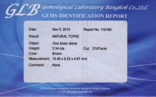 488508. TOPAZ, 3,34 CT. Champagne, certifikat.