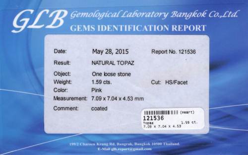488522. TOPAZ, 1,59 CT. Pink, certifikat.