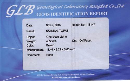 488546. TOPAZ, 4,72 CT. Champagne, certifikat.