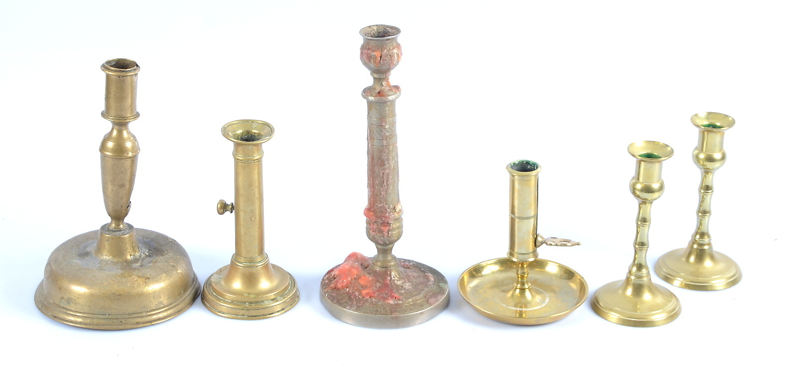 488699. Lysestager, bronze, 6 dele, 16, 17, 1800-tallet.