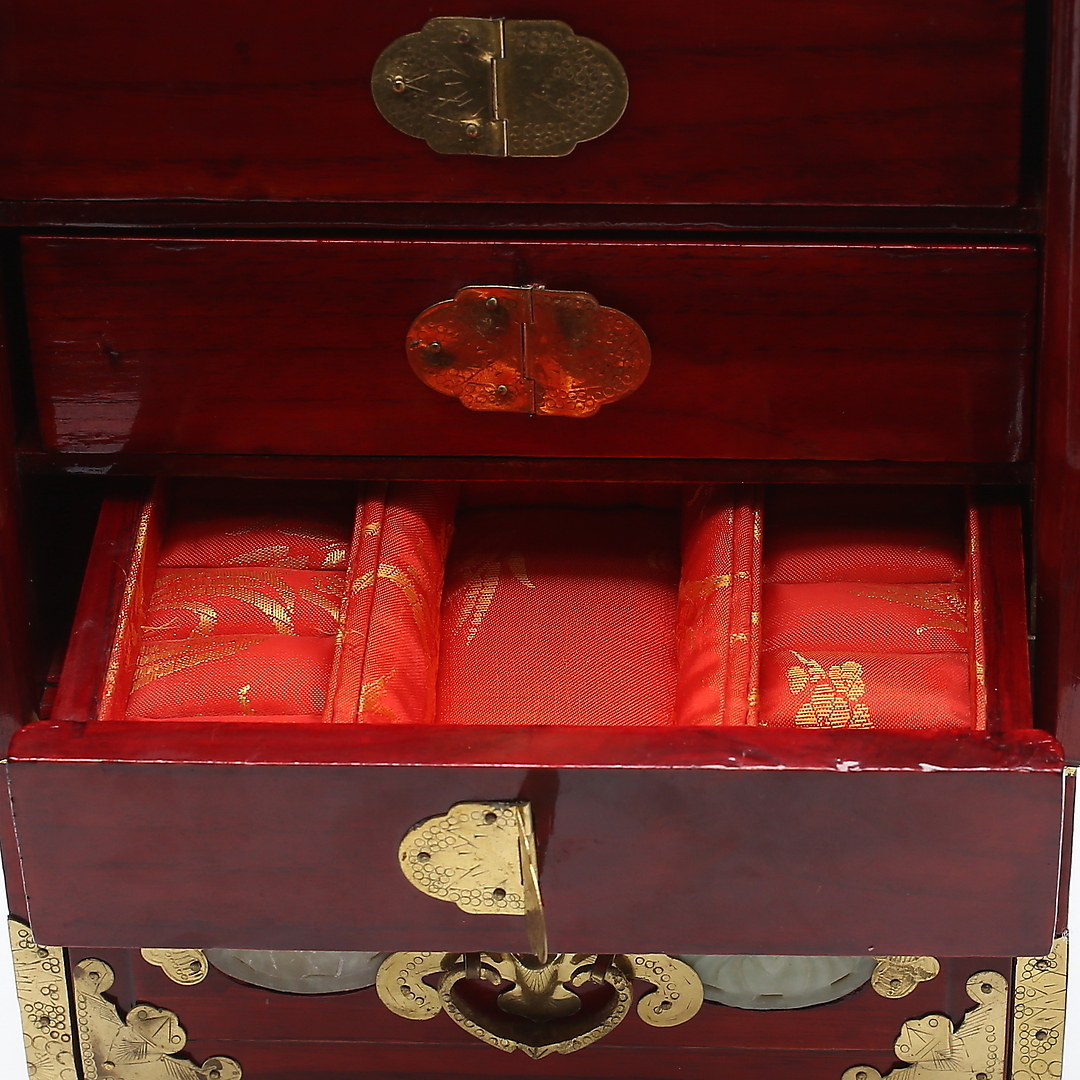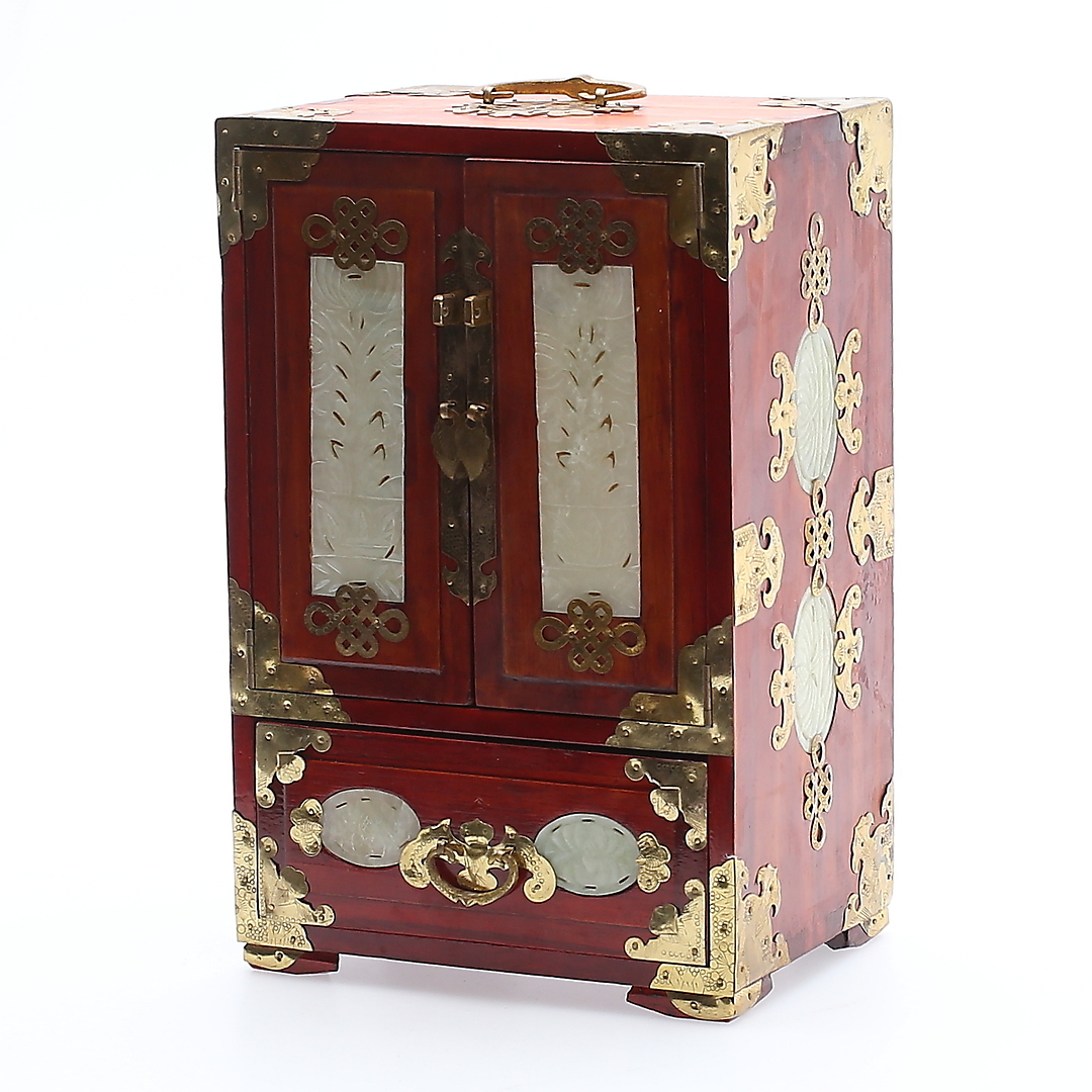 489183. SMYKKEæSKE, træ/jade, orientalsk, 19/2000 tallet.