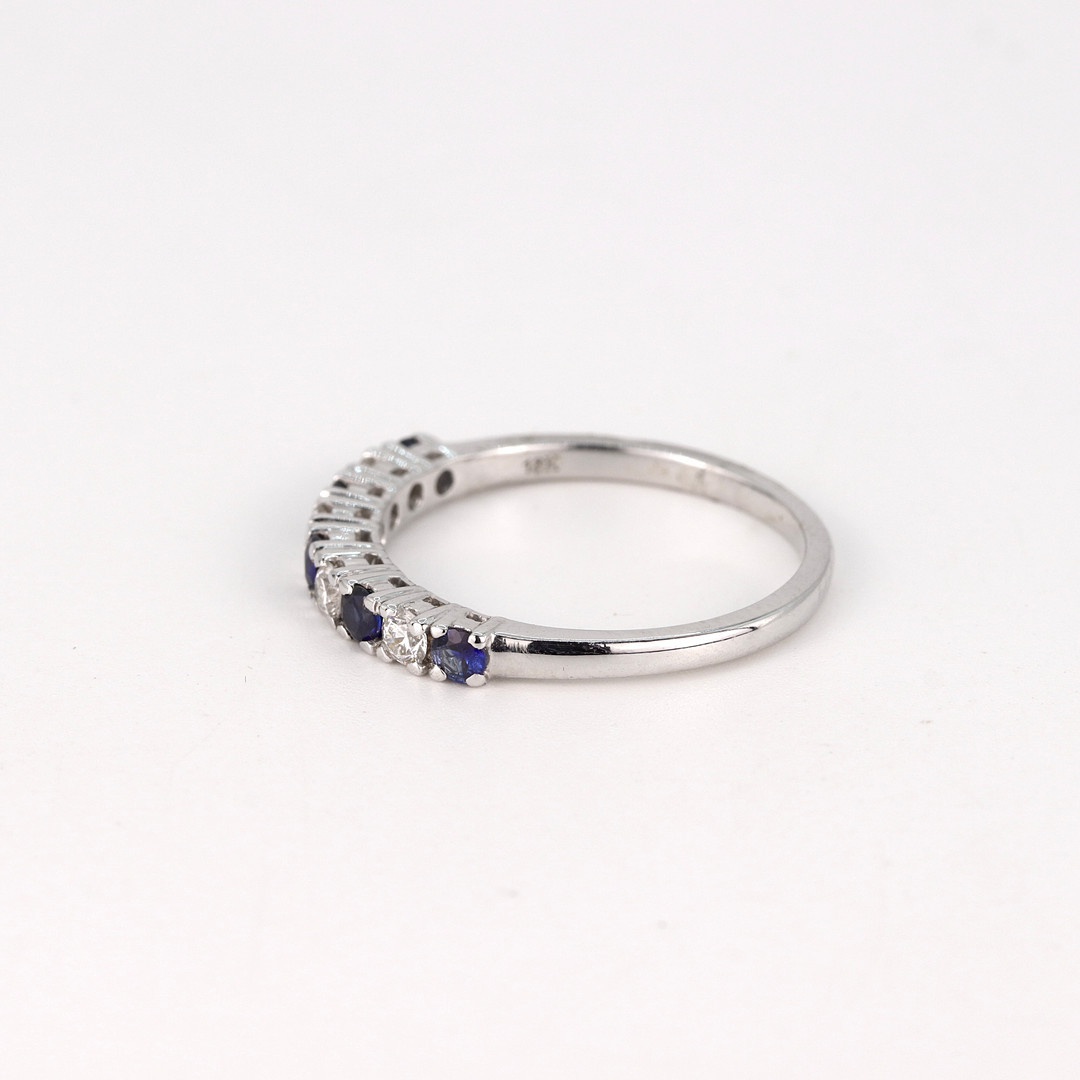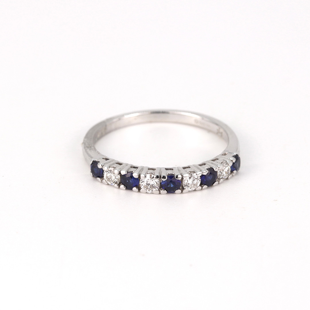 4892366. 18K HVIDGULD DIAMANT & BLÅ STEN SÆT RING.
