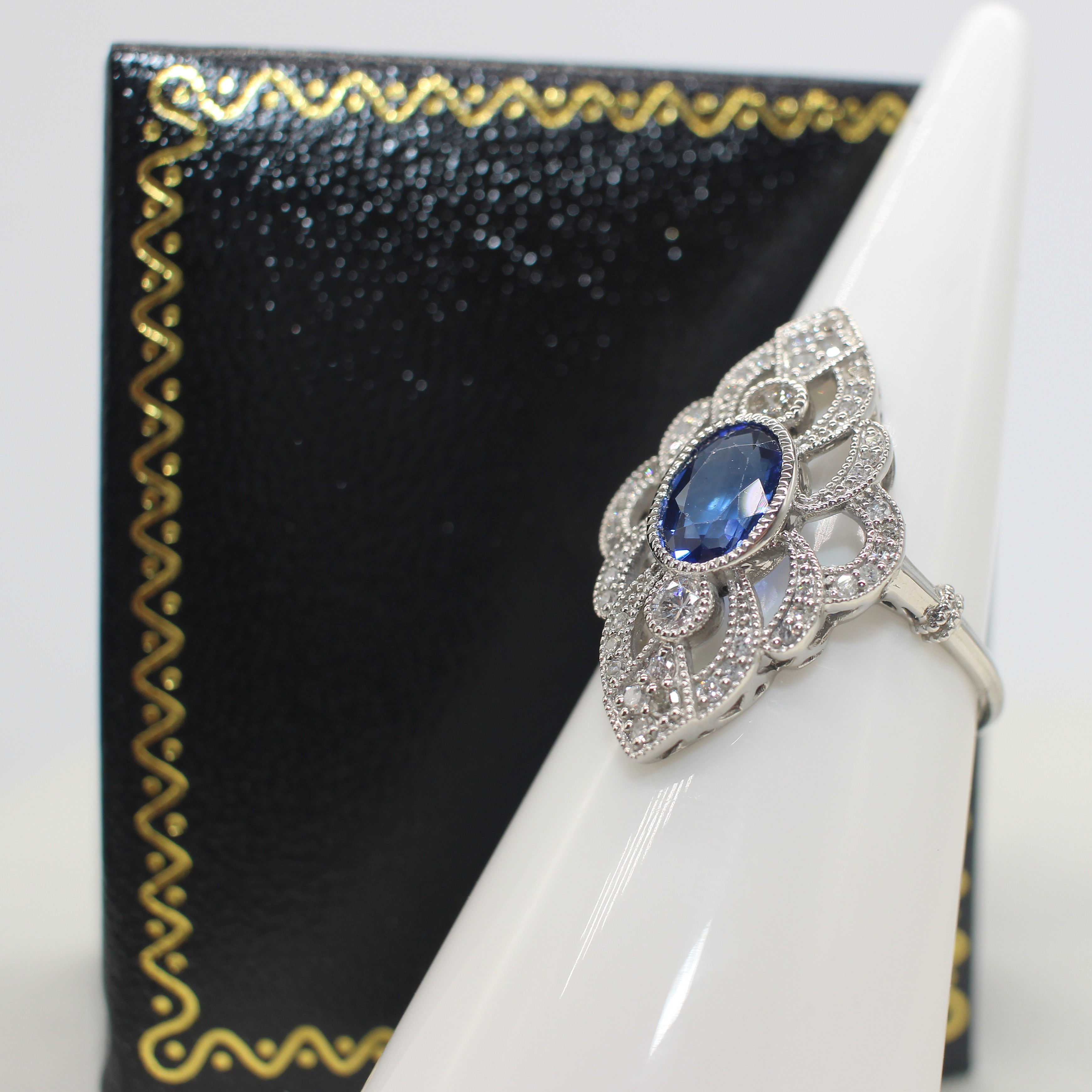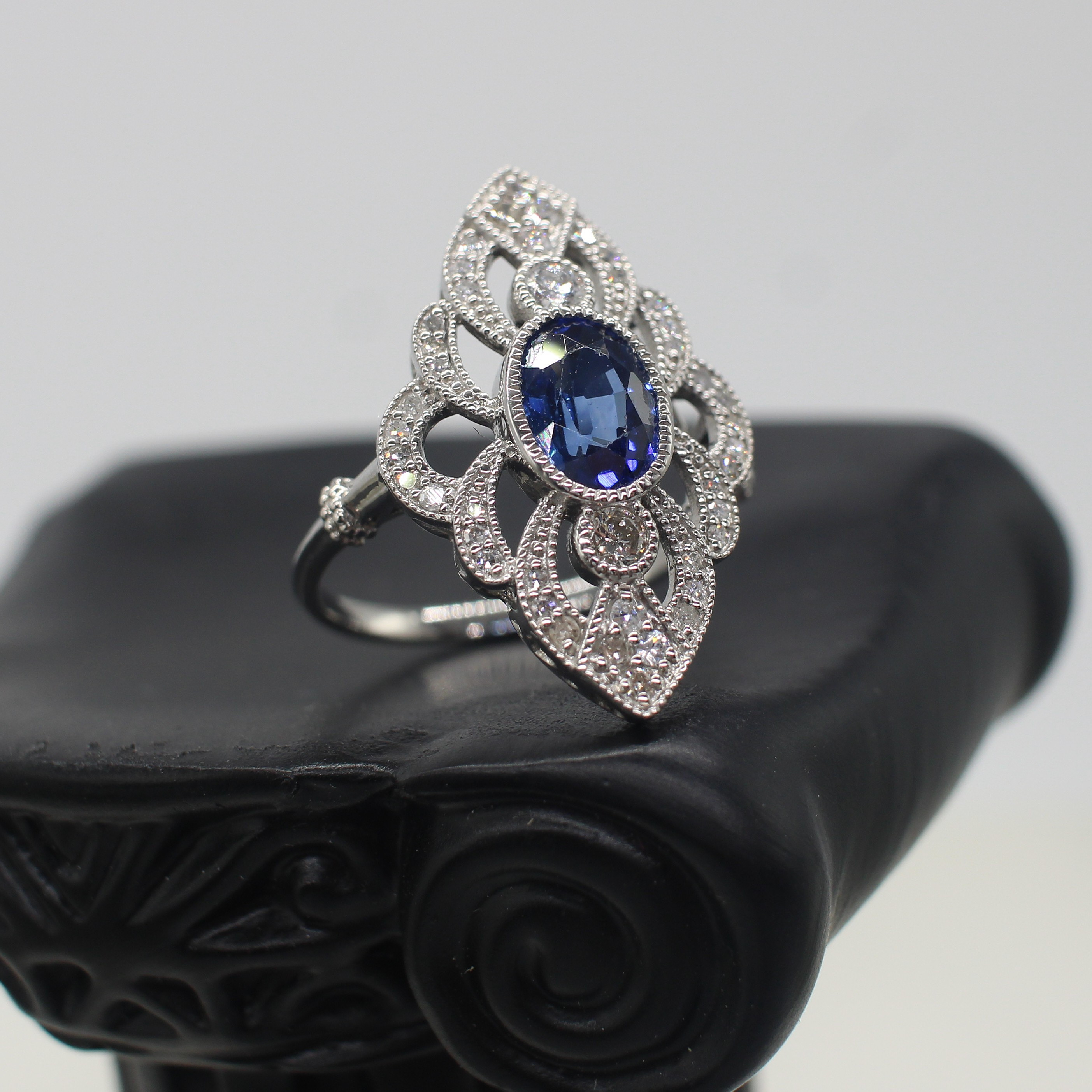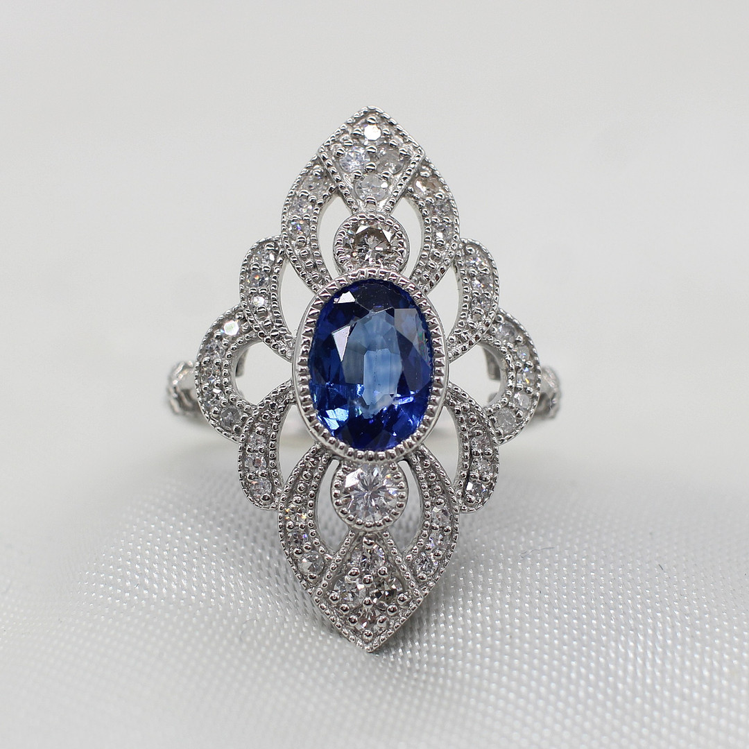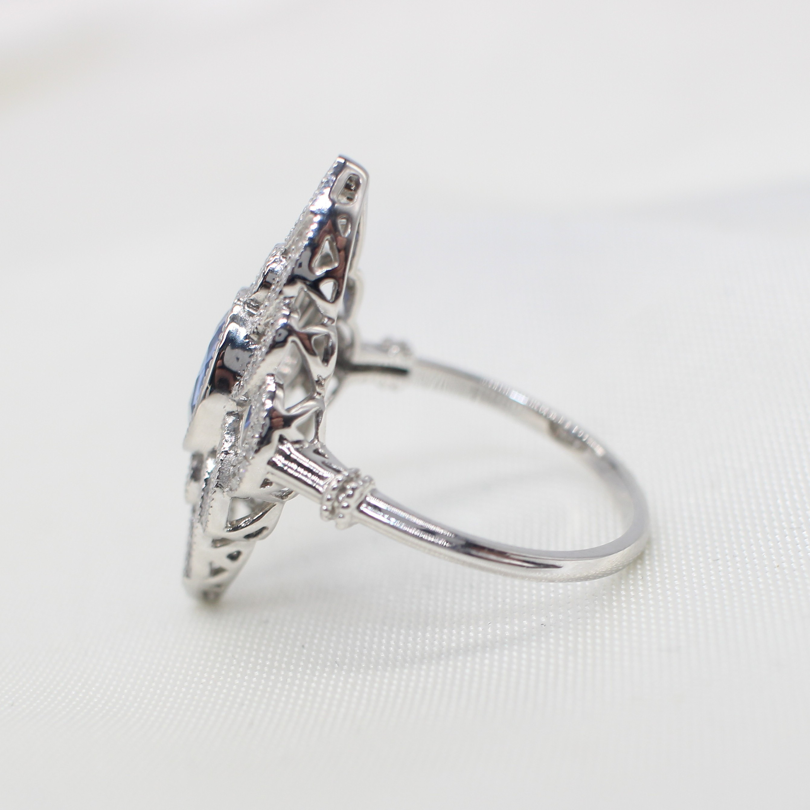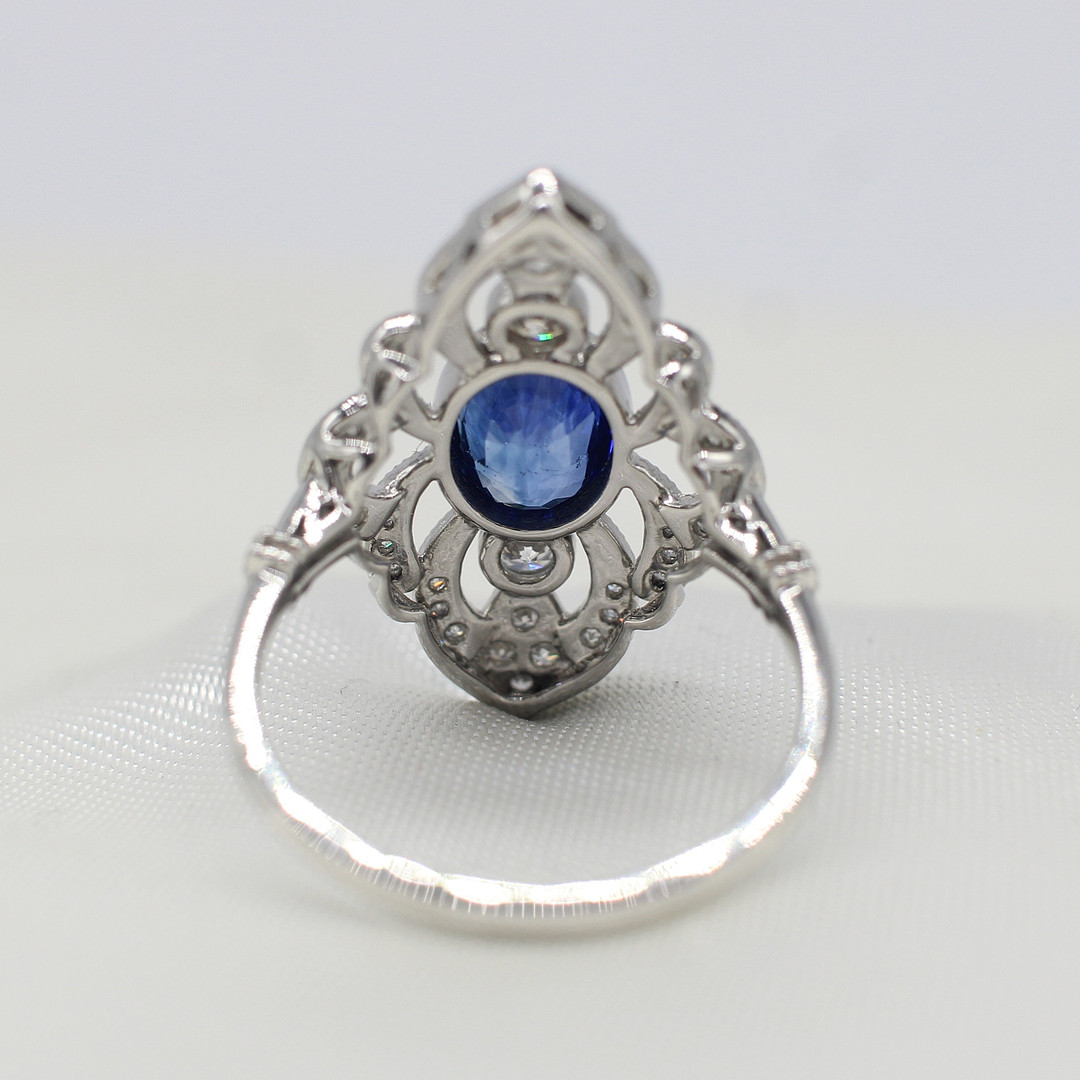 4892455. SAFIR & DIAMANT MARQUISEFORMET RING.