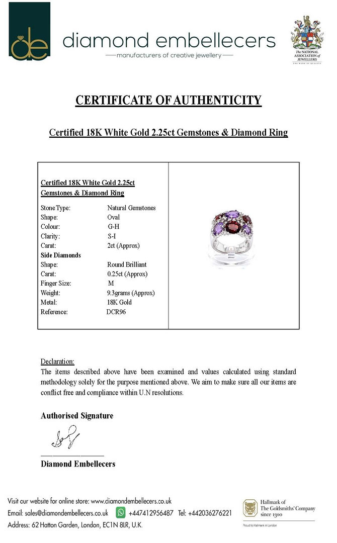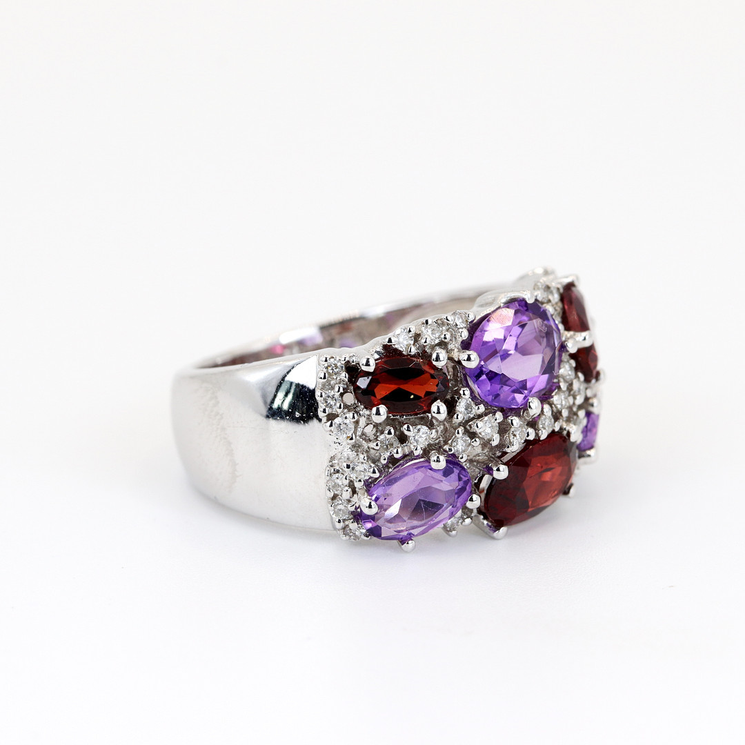4893504. 18K HVIDGULD DIAMANT, AMETYST & GRANAT SÆT RING.